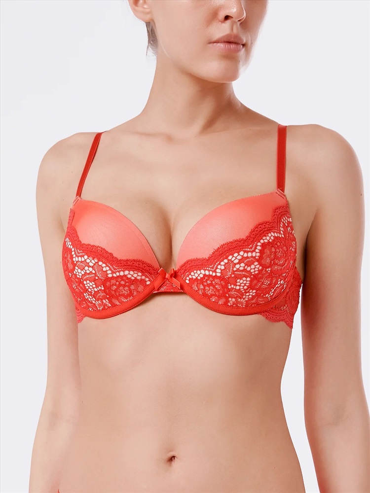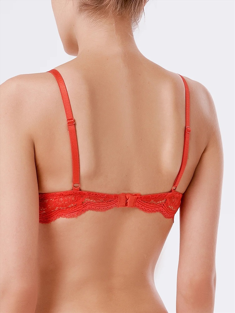 Красный – идеальный оттенок, чтобы создать дерзкий и чувственный образ. Соблазнительное сочетание пудровой атласной основы и изящного кружевного обрамления в модели Push Up создано, чтобы покорять и восхищать. А при помощи модели с формованной чашкой можно легко создать «эффект кружевной вуали» на обнаженной коже. В комплекте также представлены трусики – слипы и бразилианы.