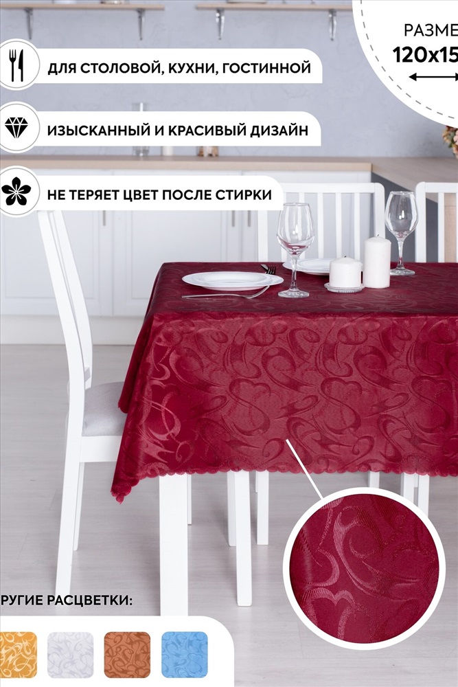 ID товара: 901135 Состав: 100% Полиэстер Сезон: Весна/Лето Вид ткани: Полиэстер Страна бренда: Россия Страна производства: Россия Скатерть жаккардовая. Подходит на кухонный стол для кухни и на обеденный стол в гостиную, можно использовать для дома, для дачи, на праздничный стол, а так же для ресторанов и кафе. Состав: 100% полиэстер. Чтобы скатерть дольше сохраняла привлекательный вид, советуем стирать ее при температуре воды не более 40 градусов на деликатном режиме. Скатерть легко отстирывается, надежная и износостойкая ткань, которая не садится - прослужит долгие годы! Оттенок изделия может отличаться от предоставленного на сайте в силу особенностей цветопередачи фототехники и Вашего монитора. Комментарии к товару