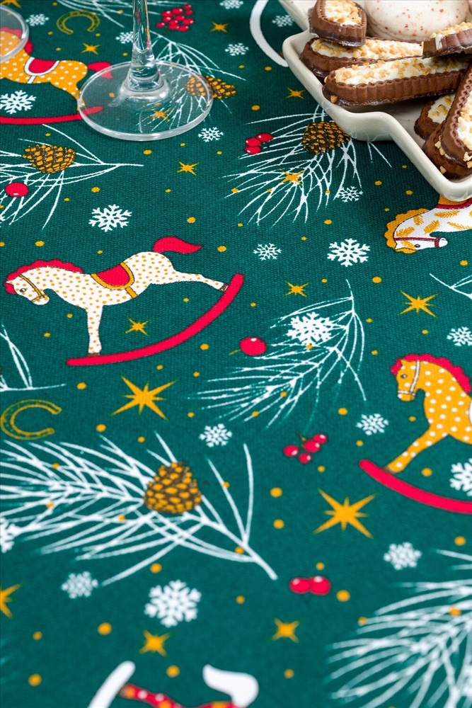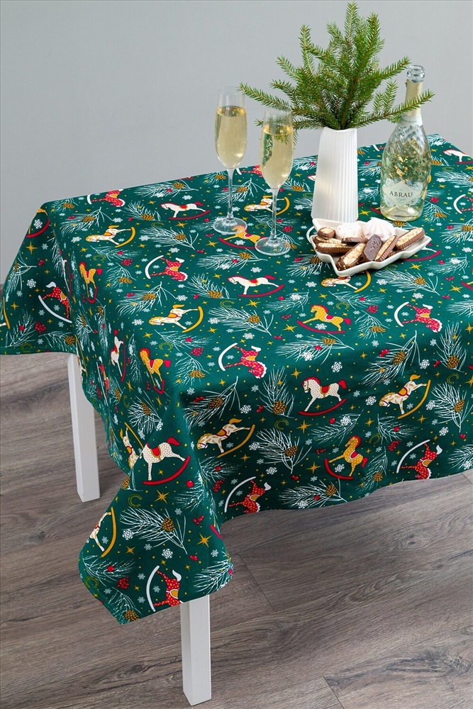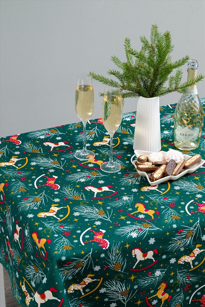 ID товара: 1200507 Состав: 100% Хлопок Сезон: Осень/Зима Основная ткань: Хлопок Вид ткани: Рогожка Страна бренда: Россия Страна производства: Россия Новогодня скатерть с символом 2026 года Лошадки добавит капельку волшебства в ваш дом. Яркая зеленая скатерть с лошадками и зимними узорами станет отличным дополнением к интерьеру вашей кухни. Скатерть представлена в трех размерах, что позволяет выбрать идеально подходящий к вашему столу. Выполненная из 100% хлопковой рогожки скатерть Лошадки прекрасно держит яркость красок и первоначальный внешний вид долгие годы. Комментарии к товару