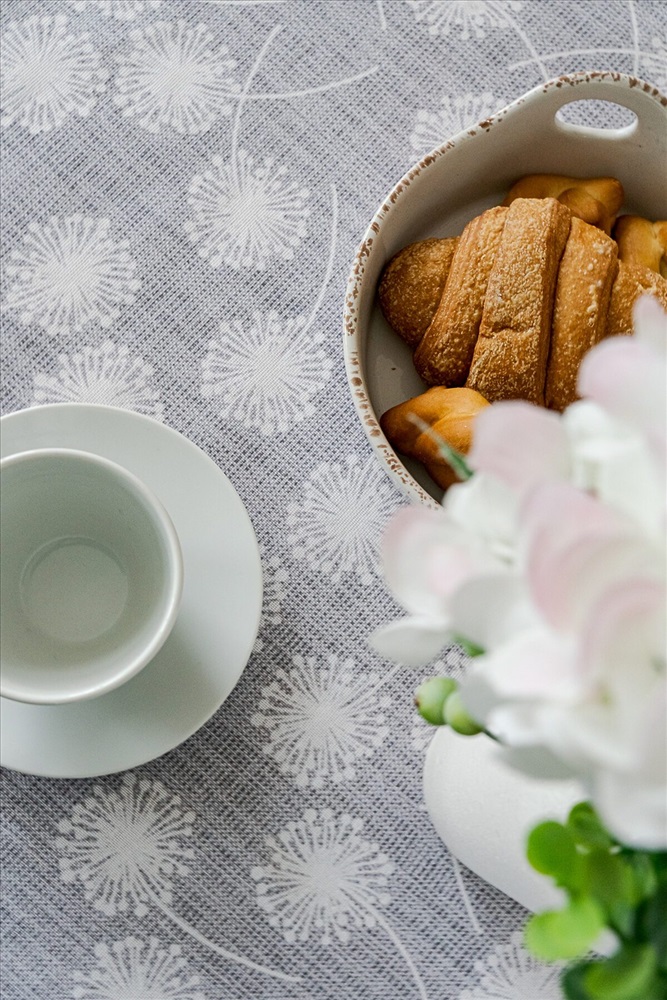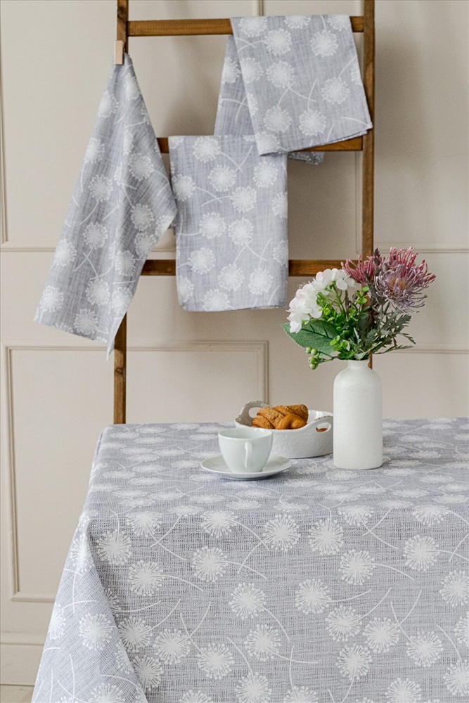 Серая скатерть для кухни Рафаэлка это отличное сочетание лаконичного дизайна и качественного материалла. Она выполнена из хлопковой рогожки и благодаря чему со скатерти легко отстирываются загрязнения. Рафаэлка - это дизайн, который воплощает понятие легкости и гармонии. Легкие белые рисунки в виде цветов на светло-сером полотне внешне похожем на лен создают лаконичную и изысканную картину.