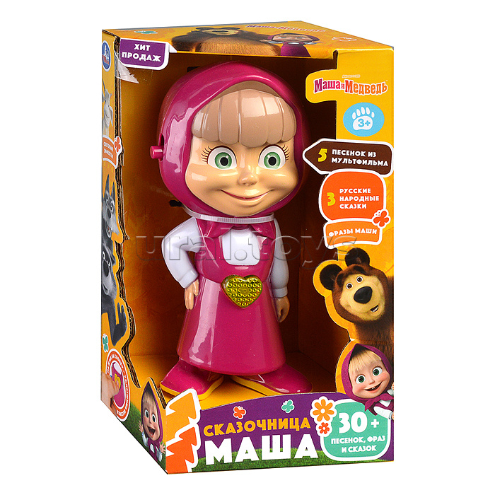 Код: 484914 Штрихкод: 4630395004879 Страна производитель: Китай Размеры упаковки: 9 x 12.5 x 20.5 см Количество в коробке: 20 Размер: 8х7х18 см. Работает от 2-х батареек типа ААА (в комплекте). - 30+ песенок, фраз и сказок - 5 песен из м/ф (фрагменты): «Барабашка», «Большой поход», «Дискотека», «Приметы», «Шалун-валун» - 3 русские народные сказки: «Репка», «Колобок», «Теремок» - фразы Маши - световые эффекты - переключатель Вкл./Выкл. Материал: пластик. Соответствует требованиям безопасности продукции. Для детей от 3 лет. Комментарии к товару