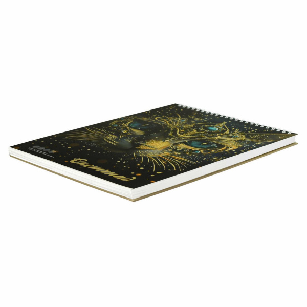 Альбом для рисования (Скетчпад) А4 60 л, блок - белый офсет 100 г/м?, арт. 70033 АСТРАЛЬНЫЙ КОТ /обложка полноцветная печать, гребень по короткой стороне, матовая ламинация, тиснение фольгой