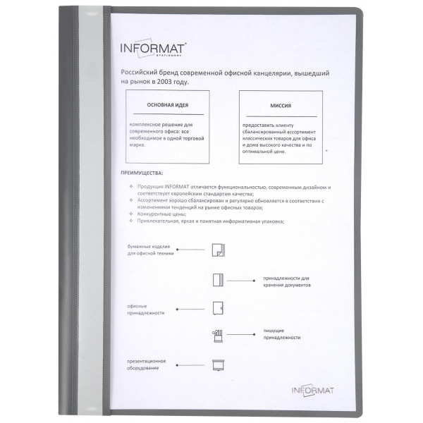 Наименование: Скоросшиватель А4 пластиковый серый 0,18мм 4018 inФОРМАТ