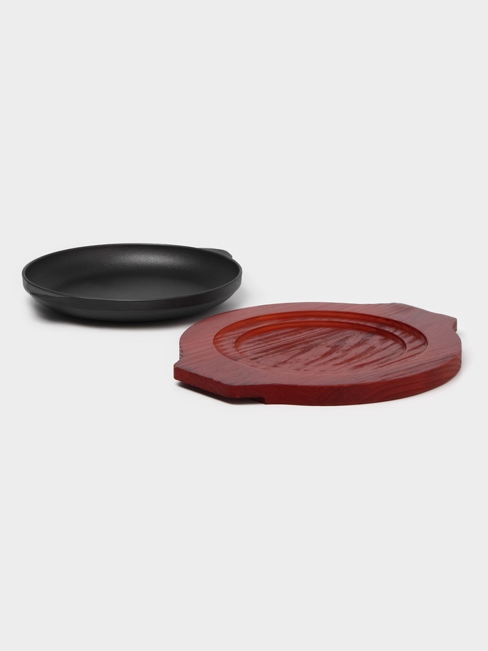 Страна: Китай В боксе: 20 шт Состав: Дерево, чугун Материалы: дерево, чугун Фасовка: по 1 шт Индивидуальная упаковка: Пакет Габариты товара: 27,5 см × 24 см × 4 см Сертификат: СТР Набор: Нет Цвет: Коричневый, Чёрный Диаметр, см: 20 Вид упаковки: Пакет Рисунок: Нет Крышка: Нет Материал: Чугун Тип покрытия: Без покрытия Тип плиты: Для электрической плиты, Для стеклокерамической плиты, Для галогенной плиты, Для газовой плиты Разъёмная форма: Нет Для детей до 3 лет: Нет Капсульное дно: Нет Можно мыть в посудомоечной машине: Нет Можно использовать в СВЧ-печи: Да Особенности: Без особенностей Следуйте новым гастрономическим трендам с уникальной сковородой, которая не только привнесёт стиль в вашу кухню, но и обеспечит безукоризненное приготовление любимых блюд. Сковорода на деревянной подставке создает гармонию между традициями и современными технологиями. Изготовленная из высококачественного чугуна и имеющая диаметр 20,5 см, эта сковорода идеально подходит для индукционных плит, а также для газовых и электрических. Чёрный цвет и минималистичный дизайн делают ее нетолько функциональной, но и эстетически привлекательной.