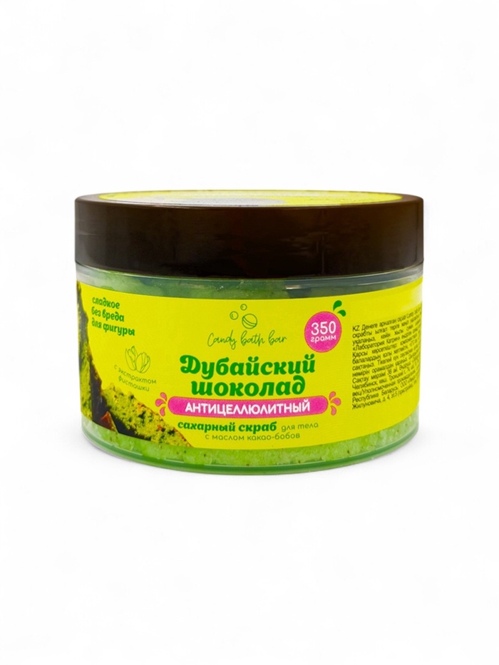 Скраб Candy Baht Bar с солью и сахаром и ароматом дубайского шоколада — это идеальное сочетание интенсивного очищения и нежного ухода за кожей. Натуральные кристаллы соли мягко отшелушивают омертвевшие клетки, а сахар придаёт коже дополнительное смягчение и бархатистость. Питательные масла глубоко увлажняют и питают кожу, делая её гладкой и шелковистой.