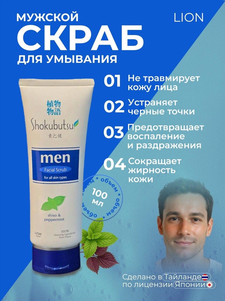 LION Пенка-скраб для умывания для мужчин SHOKUBUTSU MONOGATARI FACIAL FOAM FOR MEN SCRUB