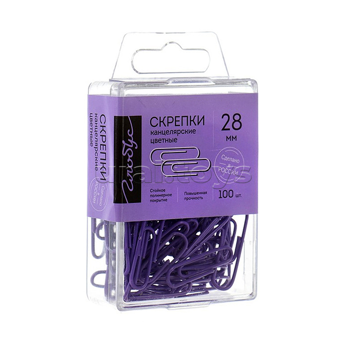 • Подходят для многократного использования. • Размер скрепки - 28 мм. • В наборе: 100 шт. • Материал: металл. • Соответствует требованиям безопасности продукции.