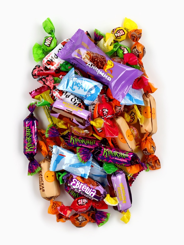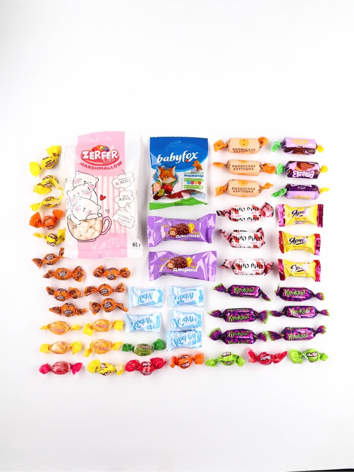 Габариты: 14,5 x 8,2 x 19,5 Страна: Россия В боксе: 38 шт Состав: См. на упаковке Материалы: см. на упаковке Фасовка: по 1 шт Индивидуальная упаковка: Пакет (БОПП, полиэтилен, ПВХ, дой-пак) Сертификат: ЕАС Набор: Да Цвет: Разноцветный Для кого: Для мальчика, Для девочки В наборе, шт.: 2 Вес нетто, г: 500 Вид упаковки: Коробка картонная Символ года: Нет Тематика праздника: Новый год Адресат: Без адресата Составляющие набора: Пазлы, Конфеты Возраст: Для детей Фиксированная цена: Да ПРИ ОФОРМЛЕНИИ ЗАКАЗА, ПРОСИМ ЗАПРАШИВАТЬ АКТУАЛЬНЫЕ СРОКИ ГОДНОСТИ У МЕНЕДЖЕРА. Карамель с начинкой фруктового вкуса «Жевательное ассорти «Nils/Нильс» Состав: сахар, патока, масла растительные (антиокислитель: токоферолы, концентрат смеси), крахмал кукурузный, стабилизатор – гуммиарабик, влагоудерживающие агенты: сорбитовый сироп, лактат натрия; регуляторы кислотности: кислота молочная, лимонная кислота; желирующий агент – пектины, концентрированные соки яблока, чёрной моркови, красители: куркумин, экстракт паприки, синий блестящий FCF; ароматизаторы, эмульгатор – лецитин соевый. Может содержать диоксид серы, следы глютена, яиц, молока, арахиса, орехов и продуктов их переработки. Конфеты с корпусами на карамельной основе глазированные мини арахис «Yarche!» Состав: ядра арахиса жареные, патока, сахар, масла растительные (эмульгатор – сорбитан тристеарат, антиокислитель: токоферолы, концентрат смеси), сыворотка сухая молочная деминерализованная, какао-порошок, эмульгаторы: лецитины соевые, Е476; молоко цельное сгущённое с сахаром (молоко цельное, молоко обезжиренное, сахар (сахароза), лактоза), соль, ароматизаторы. Может содержать диоксид серы, следы глютена, яиц, орехов и продуктов их переработки. Конфеты с грильяжными корпусами глазированные «Крокант» Состав: сахар, масла растительные (эмульгатор – сорбитан тристеарат, антиокислитель: токоферолы, концентрат смеси), ядра арахиса жареные, патока, какао-порошок, сыворотка молочная сухая деминерализованная, эмульгатор – лецитины (рапсовый, соевый), соль, орех миндаль обжаренный дроблёный, ароматизаторы. Возможно наличие диоксида серы, глютена, продуктов переработки яиц. Жевательный мармелад: ассорти вкусов с витаминами Состав: глюкозно-фруктозный сироп, сахар, желатин, регулятор кислотности – лимонная кислота, концентрированные соки: яблочный, вишнёвый, апельсиновый, клубничный, лимонный, чёрной смородины, чёрной моркови; агент желирующий – пектины, глазирователь – воск карнаубский, ароматизаторы, красители: каротины, куркумин, синий блестящий FCF; витамины: С, В6, ниацин, пантотеновая кислота, фолацин. Может содержать консервант – диоксид серы. Карамель с ореховой начинкой «Жевательная ириска Нота Бум» Состав: сахар, патока, молоко цельное сгущённое с сахаром (молоко цельное, молоко обезжиренное, сахар (сахароза), лактоза); масла растительные (антиокислители: Е304(i), Е306); декстроза, паста ядер орехов фундука обжаренных, стабилизатор – гуммиарабик, соль, сыворотка молочная сухая деминерализованная, какао-порошок, влагоудерживающий агент – сорбитовый сироп, ароматизатор, эмульгатор – лецитин соевый. Может содержать диоксид серы, следы глютена, яиц, арахиса и продуктов их переработки. Конфеты с корпусами на основе дроблёного печенья глазированные «Яшкинская картошка» Состав: мука пшеничная, сахар, масла растительные (в том чи