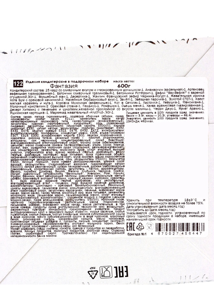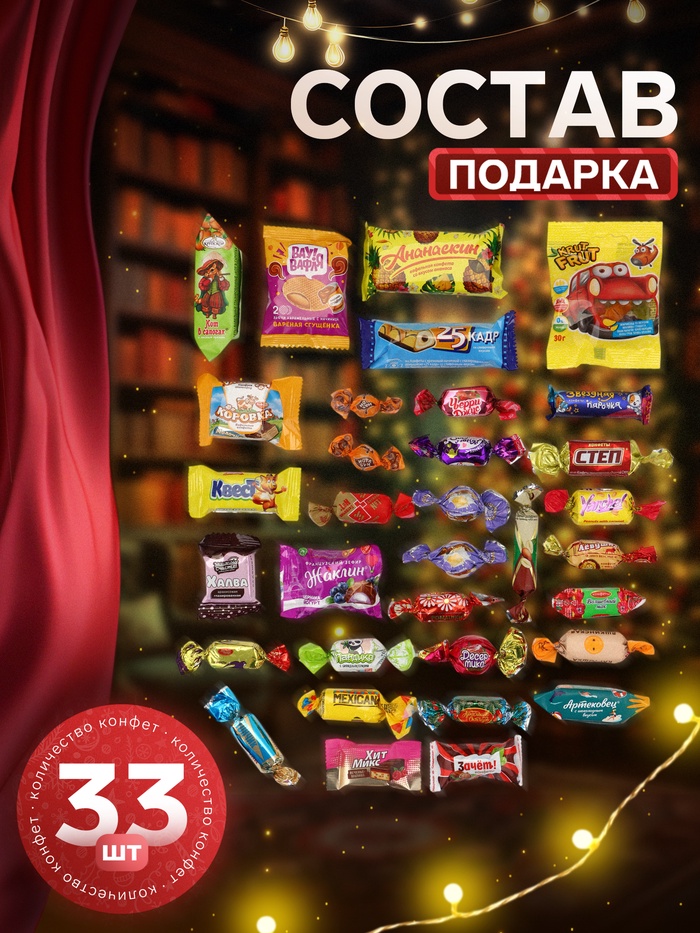 Страна: Россия В боксе: 6 шт Состав: См. на упаковке Материалы: см. на упаковке Фасовка: по 1 шт Индивидуальная упаковка: Цветная картонная коробка Сертификат: ЕАС Цвет: МИКС Для кого: Унисекс В наборе, шт.: 33 Вес нетто, г: 600 Вид упаковки: Коробка картонная Тематика праздника: Рождество, Новый год Адресат: Без адресата Материал: Картон Составляющие набора: Конфеты Возраст: Для детей Новогодний подарок, который радует и вкусом, и видом Сладкий набор в коробке, 600 г - это продуманный сюрприз с конфетами, собранный специально для детей. Он оформлен в картонной упаковке с зимним дизайном и подходит как для девочек, так и для мальчиков.