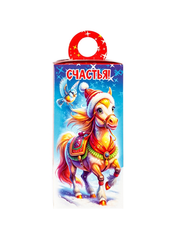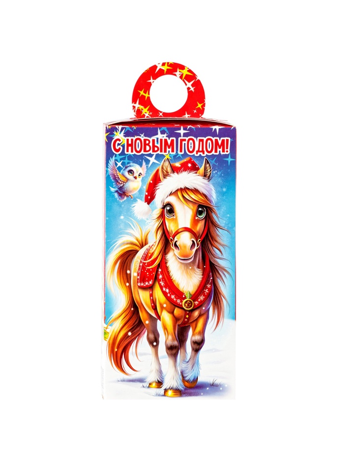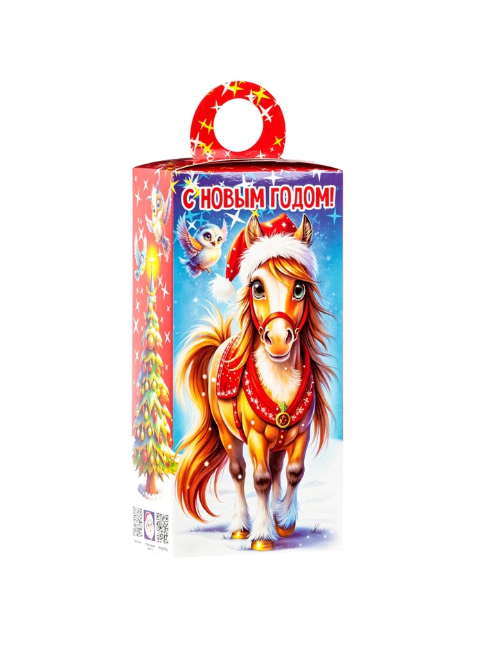 - Новогодний дизайн: Картонная коробка оформлена в зимней тематике с символом 2026 года. Яркое оформление привлекает внимание, делает подарок нарядным и праздничным.