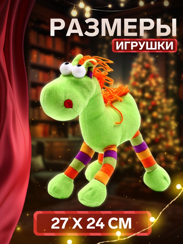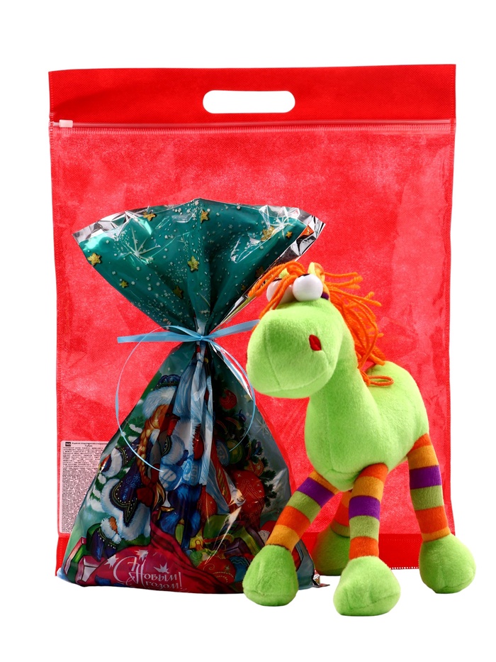 - Тканевый мешок с дизайном символа года: Упаковка оформлена в стилистике символа 2026 года. После использования мешок можно применять для хранения игрушек или как элемент новогоднего декора.