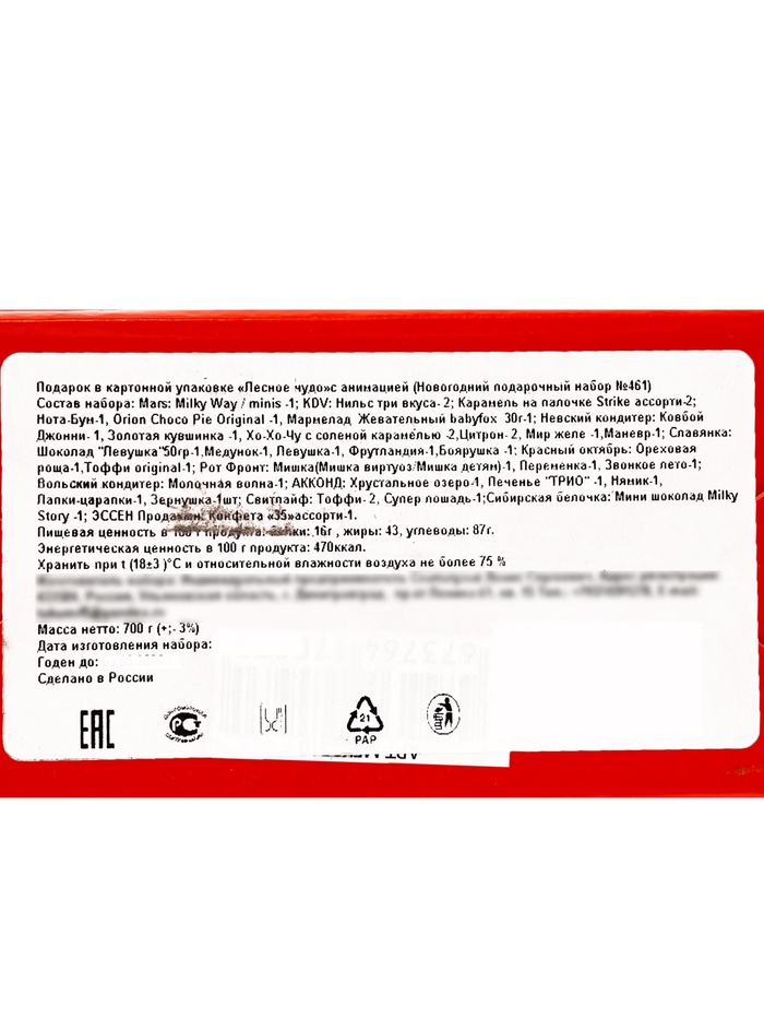 Сказочный сюрприз из зимнего леса Новогодний подарок «Лесное чудо» весом 700 г переносит волшебство заснеженной природы в праздничный набор. Картонная коробка с лесным пейзажем создаёт атмосферу уютной зимней сказки.