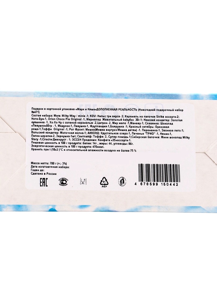 Страна: Россия В боксе: 2 шт Состав: См. на упаковке Материалы: см. на упаковке Фасовка: по 1 шт Индивидуальная упаковка: Цветная картонная коробка Сертификат: ЕАС Цвет: МИКС В наборе, шт.: 38 Вес нетто, г: 700 Вид упаковки: Картонная упаковка Тематика праздника: Рождество, Новый год Составляющие набора: Конфеты Новогодний подарок с лошадками «Марк и Няша» создан для детей, которые любят этих добрых персонажей. Эта коробка со сладостями становится продолжением знакомого мира, где живут две маленькие лошадки и их друзья. Что найдёте внутри