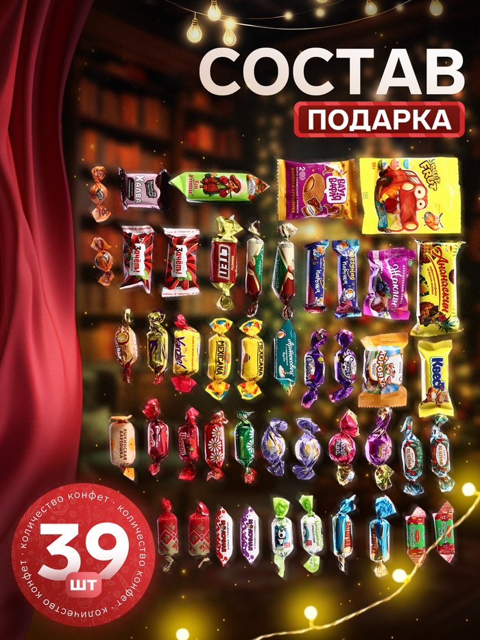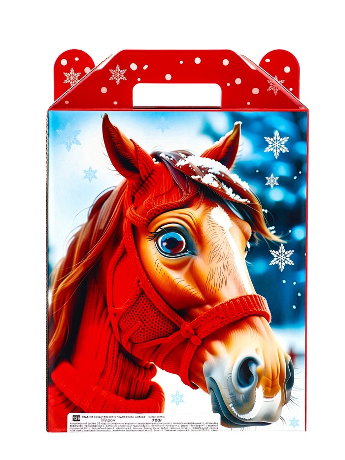 Страна: Россия В боксе: 12 шт Состав: См. на упаковке Материалы: см. на упаковке Фасовка: по 1 шт Индивидуальная упаковка: Цветная картонная коробка Сертификат: ЕАС Цвет: МИКС Для кого: Унисекс В наборе, шт.: 39 Вес нетто, г: 700 Вид упаковки: Коробка картонная Тематика праздника: Рождество, Новый год Адресат: Без адресата Материал: Картон Составляющие набора: Конфеты Возраст: Для детей Солидный подарок для новогодних каникул! Подарочный набор «Мирон» — это большой комплект конфет в картонной коробке с актуальным дизайном. Набор сочетает разнообразие вкусов и праздничное оформление, соответствующее символу 2026 года.