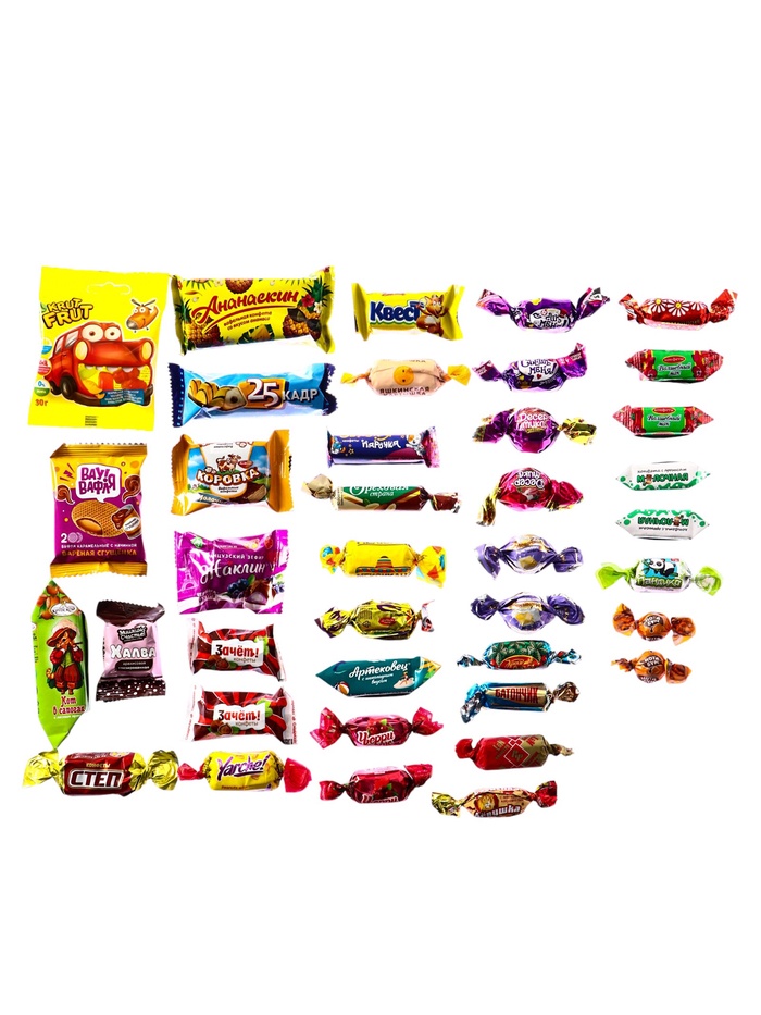 - 39 различных конфет: В коробке собраны разные виды конфет общим весом 700 грамм. Такой ассортимент позволяет открывать новые вкусы каждый день праздников.
