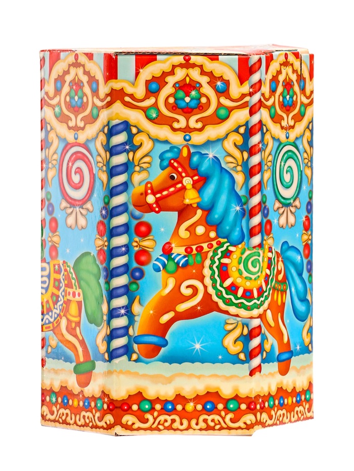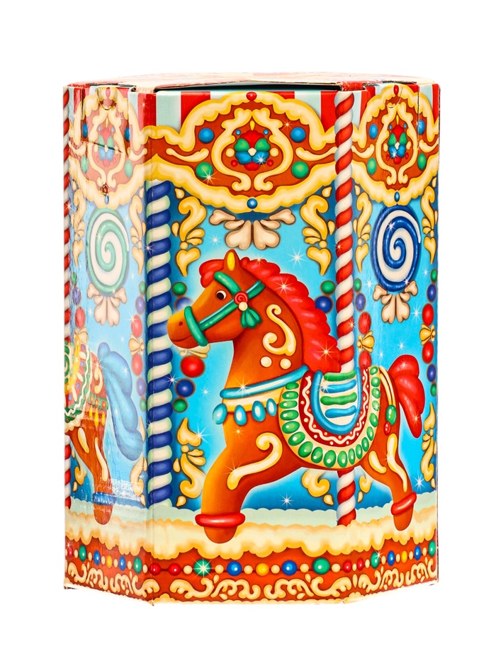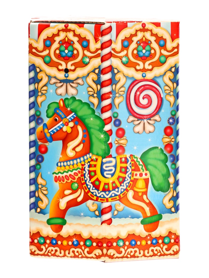 Страна: Россия В боксе: 5 шт Состав: См. на упаковке Материалы: см. на упаковке Фасовка: по 1 шт Индивидуальная упаковка: Цветная картонная коробка Сертификат: ЕАС Цвет: Разноцветный В наборе, шт.: 53 Вес нетто, г: 1000 Вид упаковки: Коробка картонная Тематика праздника: Рождество, Новый год Составляющие набора: Конфеты Фиксированная цена: Да Новогодний подарок «Пряничная карусель» весом 1000 г создаёт атмосферу весёлого карнавала. Картонная коробка с карусельным дизайном передаёт ощущение движения и праздничного веселья.