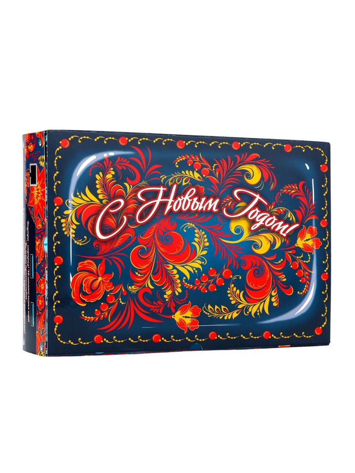- Подарочная упаковка: Картонная коробка оформлена в тематике Нового года и Рождества. Такой формат уместен и под ёлкой, и в коллективном поздравлении.