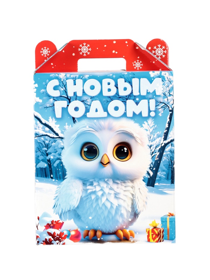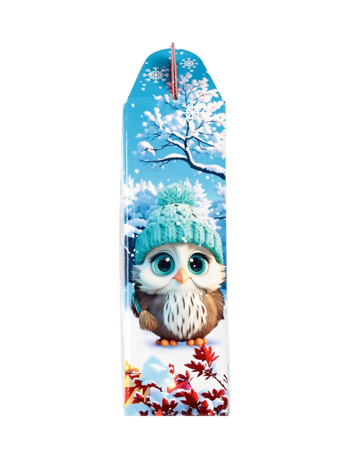 - Картонная упаковка с зимним дизайном: Иллюстрации в стиле сказочного леса и символов Нового года создают настроение праздника. Упаковка не требует дополнительного оформления.