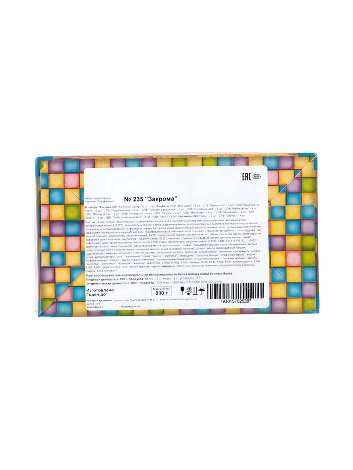 Страна: Россия В боксе: 6 шт Состав: См. на упаковке Материалы: см. на упаковке Фасовка: по 1 шт Индивидуальная упаковка: Цветная картонная коробка Сертификат: ЕАС Цвет: МИКС В наборе, шт.: 54 Вес нетто, г: 900 Вид упаковки: Коробка картонная Тематика праздника: Новый год, Рождество Составляющие набора: Конфеты Угощение для всей семьи в одном наборе! Новогодняя коробка конфет «Закрома», 900 г - это готовый подарок с праздничным оформлением и разнообразием сладостей внутри. Подходит для вручения детям, коллегам и близким на Новый год или Рождество.