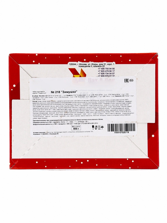 Страна: Россия В боксе: 15 шт Состав: См. на упаковке Материалы: см. на упаковке Фасовка: по 1 шт Индивидуальная упаковка: Цветная картонная коробка Сертификат: ЕАС Цвет: МИКС В наборе, шт.: 26 Вес нетто, г: 400 Вид упаковки: Картонная упаковка Тематика праздника: Рождество, Новый год Составляющие набора: Конфеты Набор сладостей «Зимушка» дополнит новогодний и рождественский стол, создавая атмосферу тепла и радости. Яркая упаковка с разнообразием конфет объединит близких за общими моментами праздника. Особенности