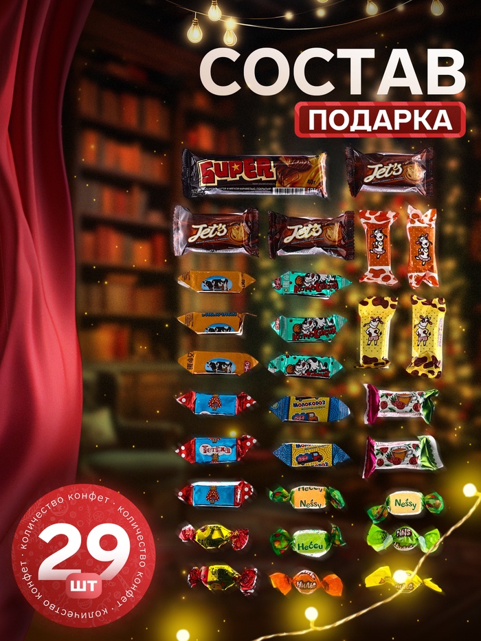 Праздничный набор конфет «Злата» станет вкусным акцентом новогоднего и рождественского стола. В яркой упаковке собраны 29 разноцветных сладостей, которые объединяют гостей и создают атмосферу уюта.