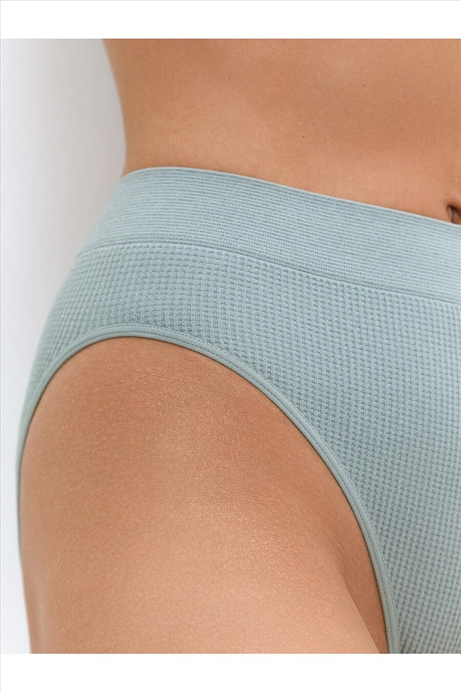 Бесшовные трусики-слипы с люрексом из микрофибры с вафельным плетением, с высокой линией талии и широким поясом. Материал в составе обладает нежной текстурой, приятно ощущается на теле, превосходно пропускает воздух, впитывает влагу, хорошо сохраняет форму и цвет. Отсутствие боковых швов, вывязанная хлопковая ластовица и удобная резинка создают оптимальный комфорт и обеспечивают свободу движений. Стильные повседневные слипы, которые отлично подходят для занятий спортом и эффектно выглядят благодаря необычной вафельной текстуре и добавлению люрекса.