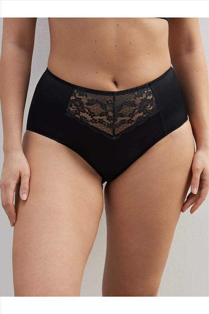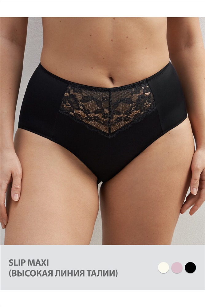 Трусы макси с высокой линией талии. Передняя деталь декорирована кружевной вставкой.