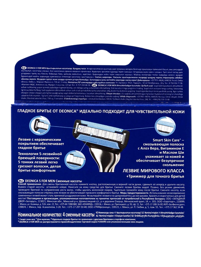 DEONICA 5 FOR MEN — сочетание эффективности, комфорта и заботы о коже, которое делает ежедневное бритьё быстрым, лёгким и безопасным.