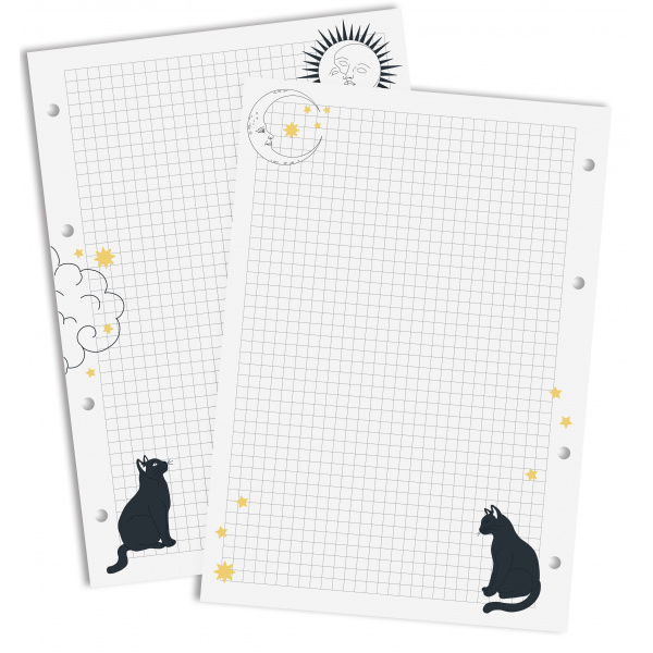 Линовка блока - приятная серая клетка. Количество листов в комплекте 100 штук - их точно хватит надолго. Формат листов А5 усеченный (200*140 мм). Данный формат идеально подходит под тетради на кольцах LOREX.