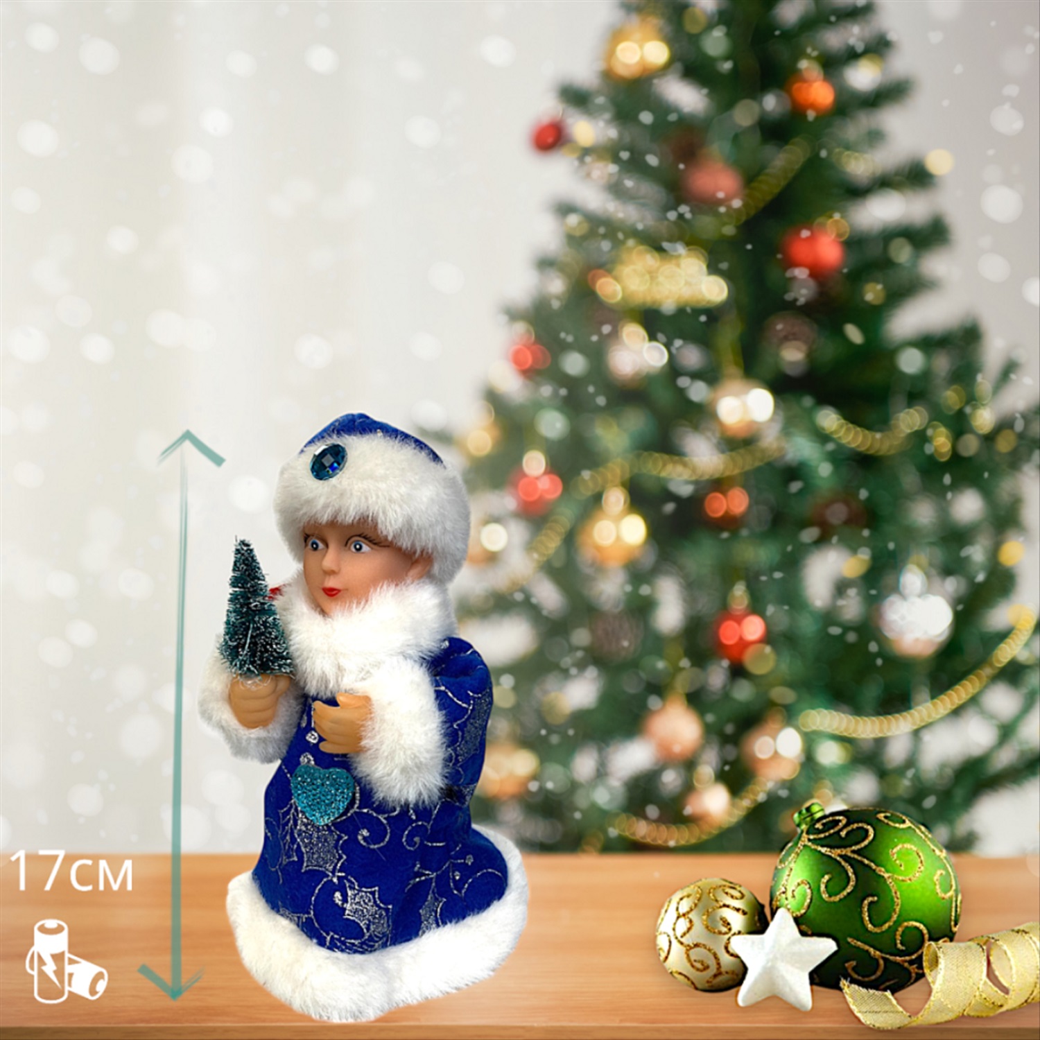 Вес уп.(гр) ~: 98 Снегурочка фигурка поющая 17см Работает от двух пальчиковых батареек (в комплект не входят)