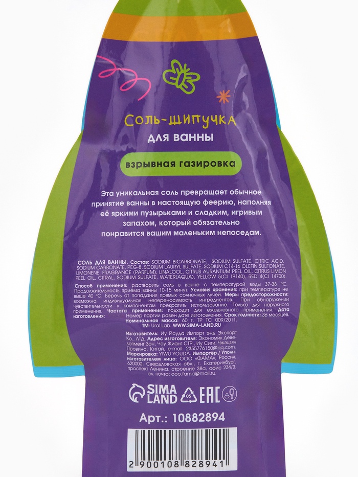 Состав: SODIUM BICARBONATE, SODIUM SULFATE, CITRIC ACID, SODIUM CARBONATE, PEG-8, SODIUM LAURYL SULFATE, SODIUM C14-16 OLEFIN SULFONATE, LIMONENE, FRAGRANCE (PARFUM), LINALOOL, CITRUS AURANTIUM PEEL OIL, CITRUS LIMON PEEL OIL, CITRAL, SODIUM SULFATE, WATER(AQUA), YELLOW 5(CI 19140), RED 4(CI 14700).