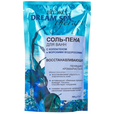 Восстанавливающая соль-пена для ванн – настоящий целительный эликсир с уникальными свойствами. Добавьте в теплую воду пенящиеся аромакристаллы, и Вы почувствуете, как воздушная пушистая ароматная соль-пена оказывает расслабляющее и очищающее действие. Целебная SPA-процедура со 100% натуральной солью для ванн, благодаря коллагену и морским водорослям, помогает насытить клетки необходимыми минералами и микроэлементами, стимулирует процессы обновления, укрепляет кожу, улучшает ее тонус и плотность, способствует уменьшению нежелательных объемов тела.