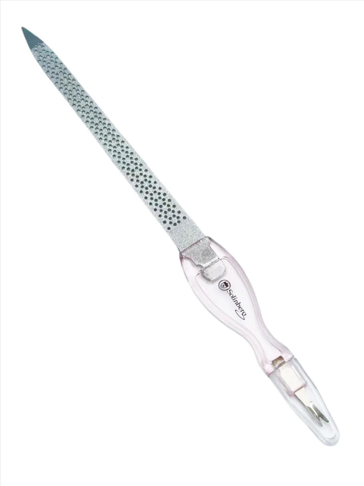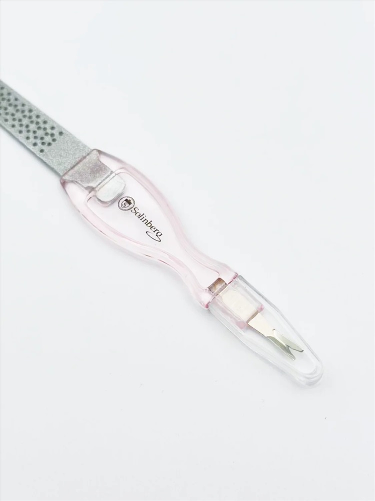 Маникюрная пилка Solinberg — удобный инструмент для ухода за ногтями. Оснащена прочной пластиковой ручкой и встроенным триммером, который позволяет аккуратно убирать кутикулу и мелкие заусенцы. Рабочая поверхность с алмазным покрытием и перфорацией обеспечивает точное, бережное подпиливание и помогает создать аккуратную форму ногтей.