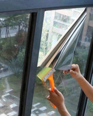Солнцезащитная пленка - штора для окон, Цена: Размер 300х80см - 40р Размер 300х60см - 30р 📍ТК Садовод, 7 линия 52-54 павильон 📲 WhatsApp: +7 (977) 536-38-92 Пленка создает "эффект зеркала" - с внешней стороны помещения защищает от посторонних взглядов, с внутренней стороны создает прозрачный фон, т.е. все просматривается словно через тонированное стекло (на иллюстрации пленка на правой фрамуге). Пленка предохраняет от выгорания штор, мебели, ковров, обои и т.п. Способ монтажа: 1. На чистое стекло с внутренней стороны помещения равномерно нанести воду с помощью с распылителя или обильно смоченной тканью. По влажному стеклу раскатайте рулон внутренней, зеркальной стороной (произойдёт эффект прилипания). Установите нужное положение плёнки и сухой мягкой тканью аккуратно разгладить морщинки с середины к краям. Стекло приобретёт зеркальный эффект. Плёнку рекомендуется устанавливать на закате солнца. 2. При помощи скотча и кнопок плёнка крепится к раме.