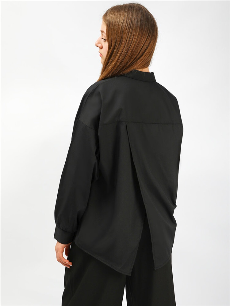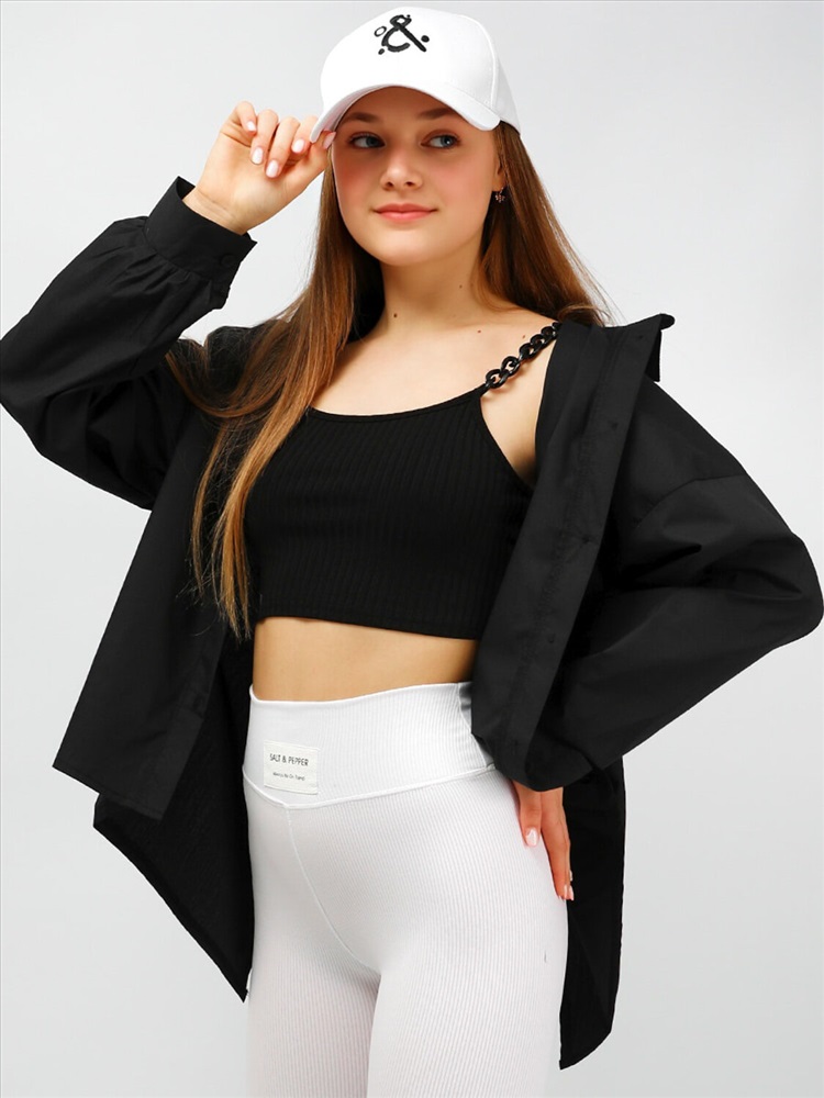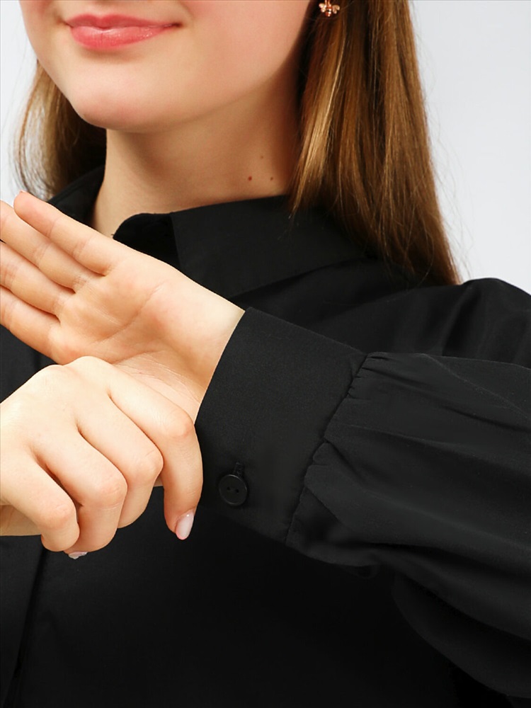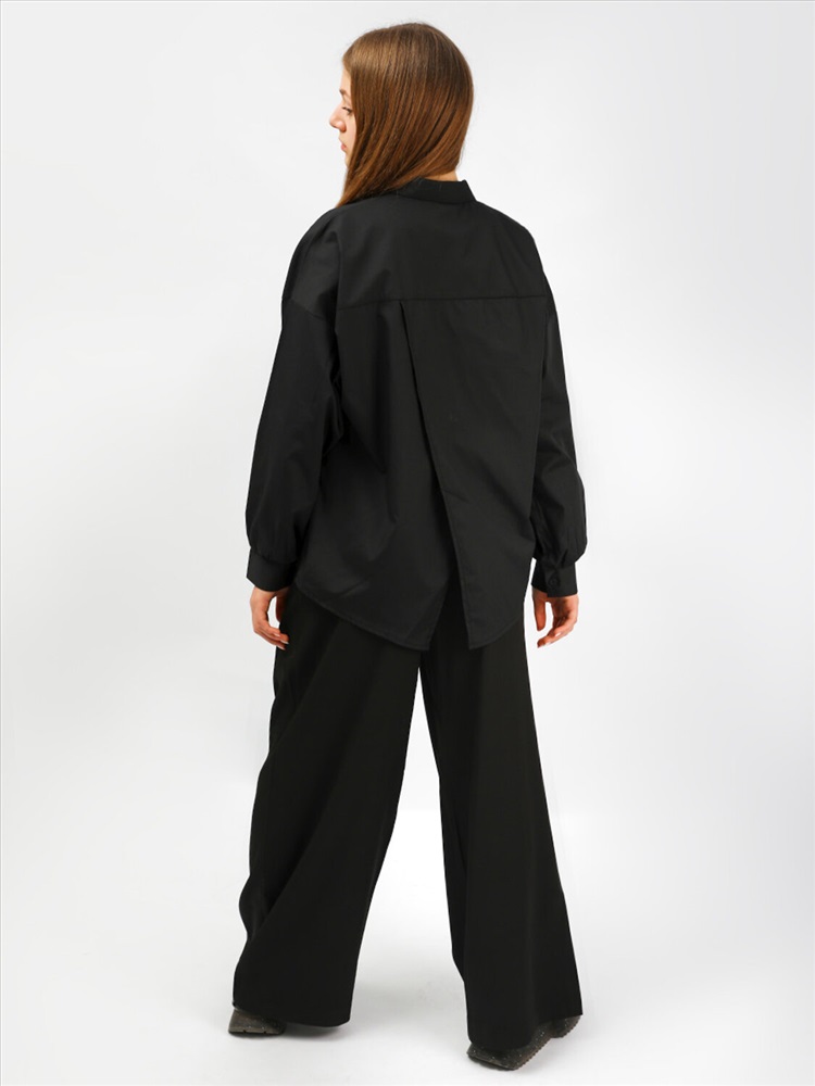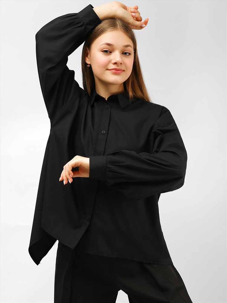 Блузка Соль&Перец модель оверсайз для девочек и подростков на пуговицах. Удлиненная спинка, плечо немного приспущено, рукава заканчиваются манжетой. Блузка прекрасно сочетается как с брюками, так и с юбкой, подчеркнет индивидуальный стиль девочки, и разнообразит ее повседневный школьный образ.