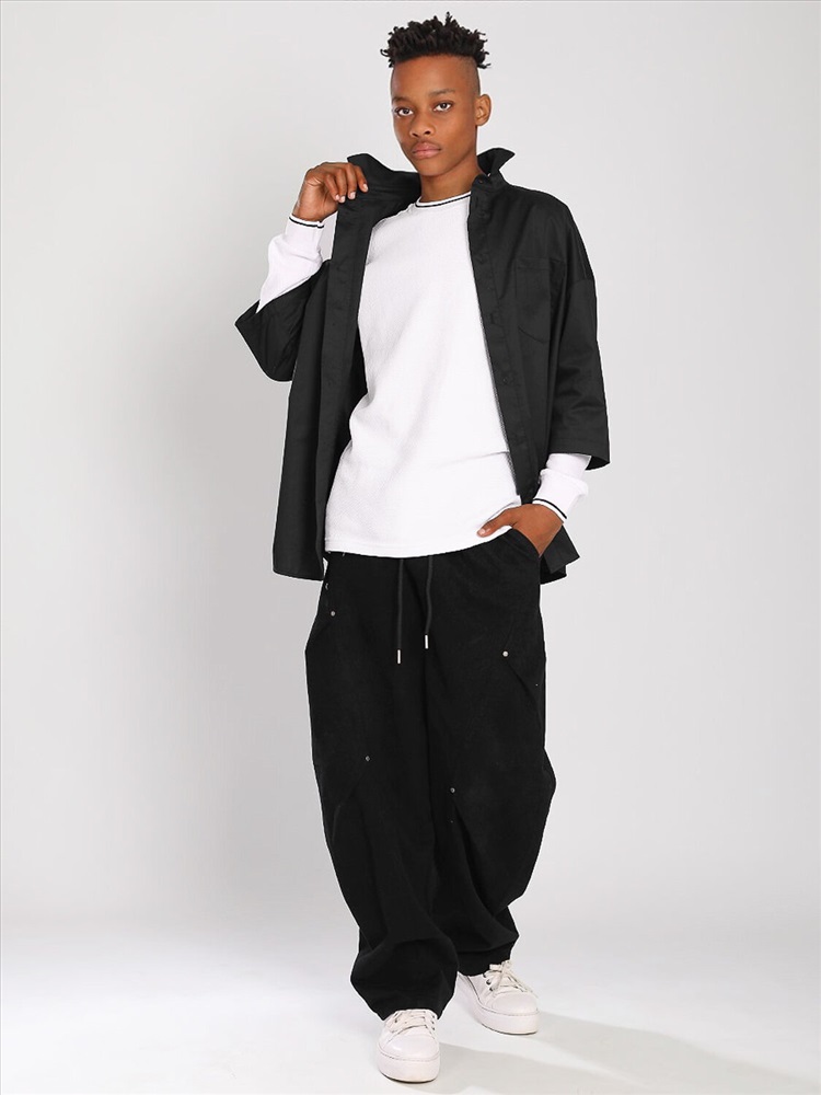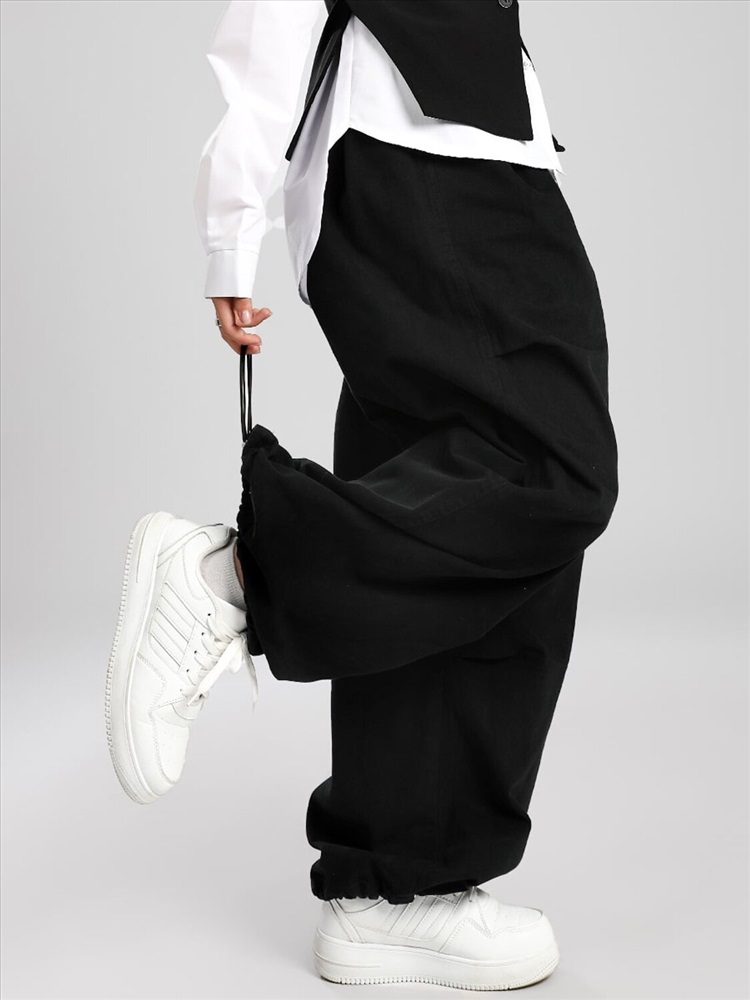 Брюки подростковые Соль&Перец, из плотного коттона, свободного кроя оверсайз. Широкий, эластичный пояс без молнии и пуговиц со шнурком, по бокам удобные карманы, низ брючин на кулиске.