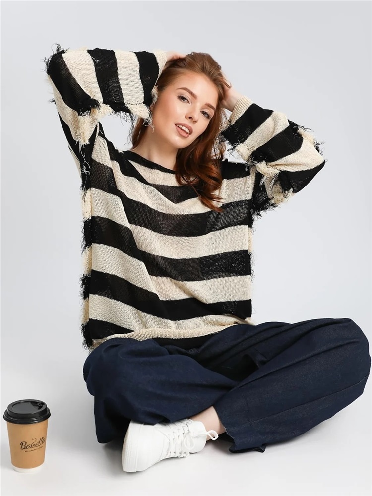 Джемпер Соль&Перец в стиле оверсайз, с трендовым принтом “полосы” и эффектными дырками – универсальная вещь, которая станет основой вашего гардероба. Модель выполнена из высококачественного материала, который обладает рядом преимуществ: приятная текстура, хорошая терморегуляция, износостойкость, комфорт при носке. Джемпер идеально сочетается с любыми предметами гардероба. Подходит для повседневной носки, прогулок, встреч с друзьями. Станьте обладателем этой стильной и комфортной вещи, которая станет незаменимой частью вашего гардероба!