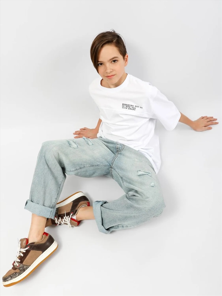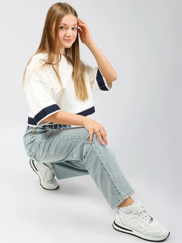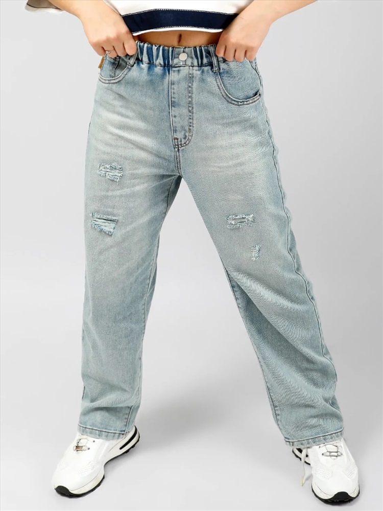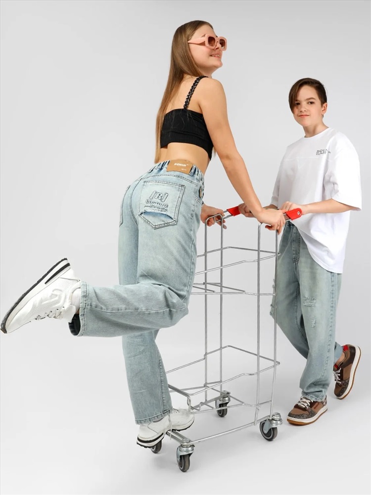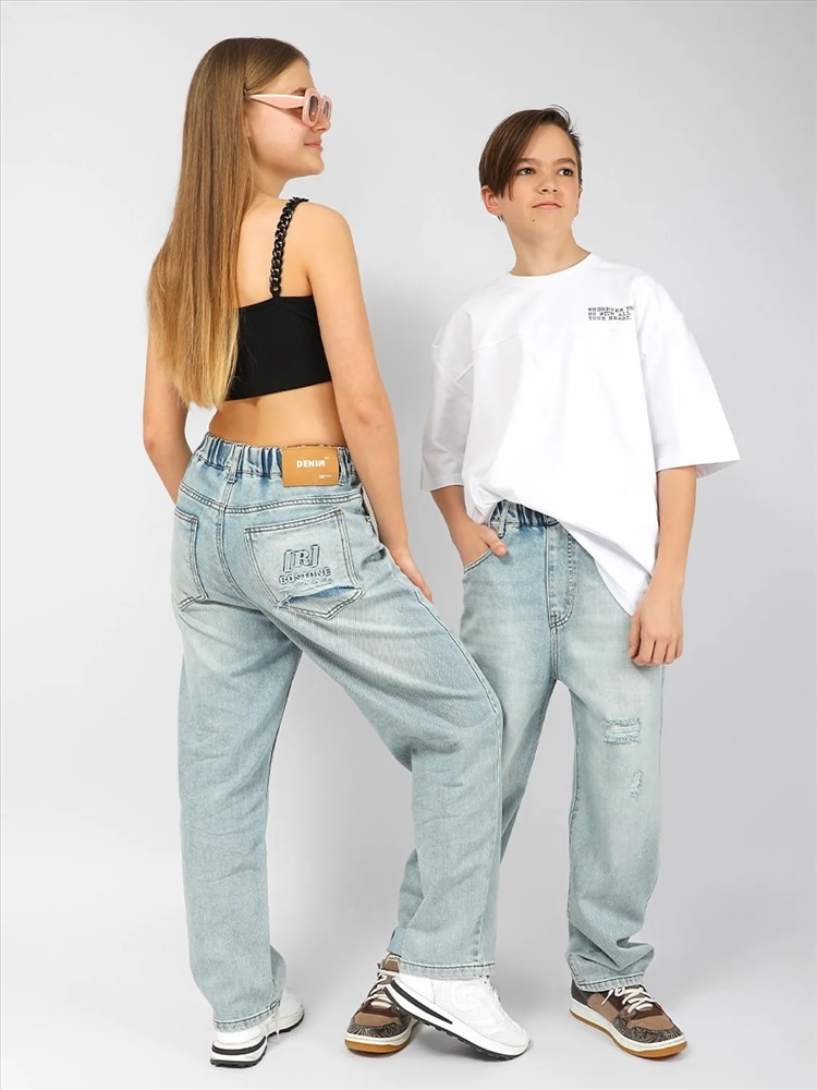 Джинсы-бананы Соль&Перец. Трендовая модель из эластичного денима, на широкой резинке, без молнии и пуговиц.