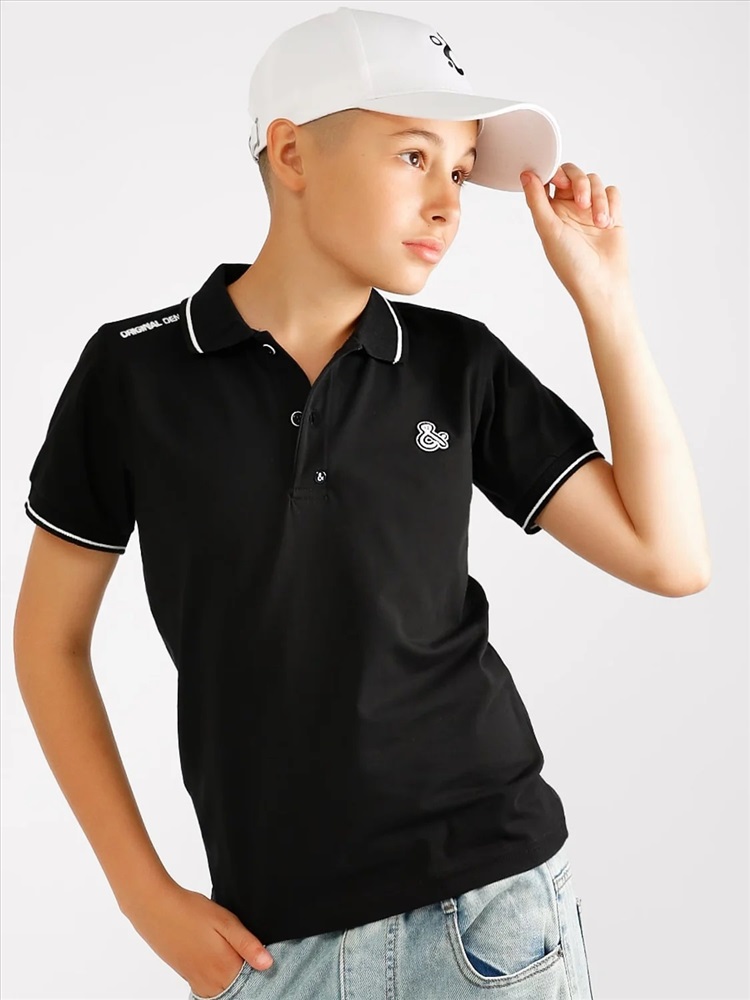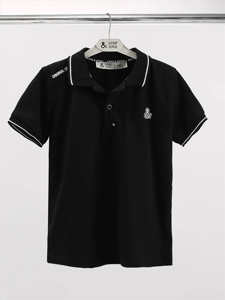 Батник для мальчика Соль&Перец. Футболка-поло для мальчика изготовлена из натурального хлопка с добавлением эластана. Классическая модель прямого кроя с коротким рукавом и отложным воротником. Застёгивается на две пуговицы, декорирована белой вышивкой. Самый актуальный, универсальный вариант для школы и отдыха.