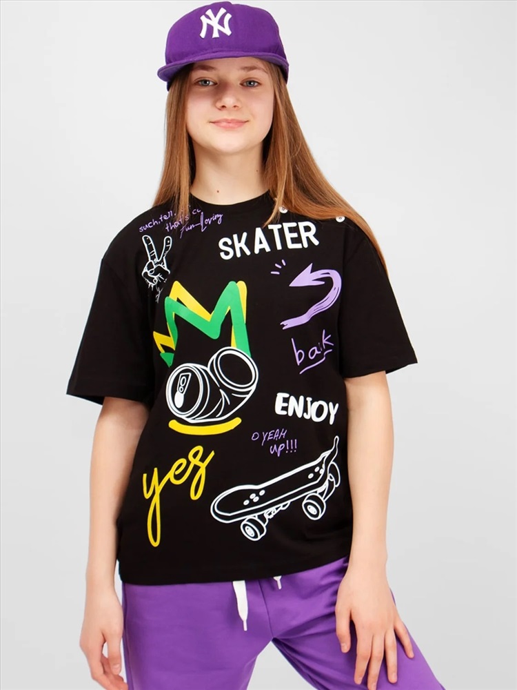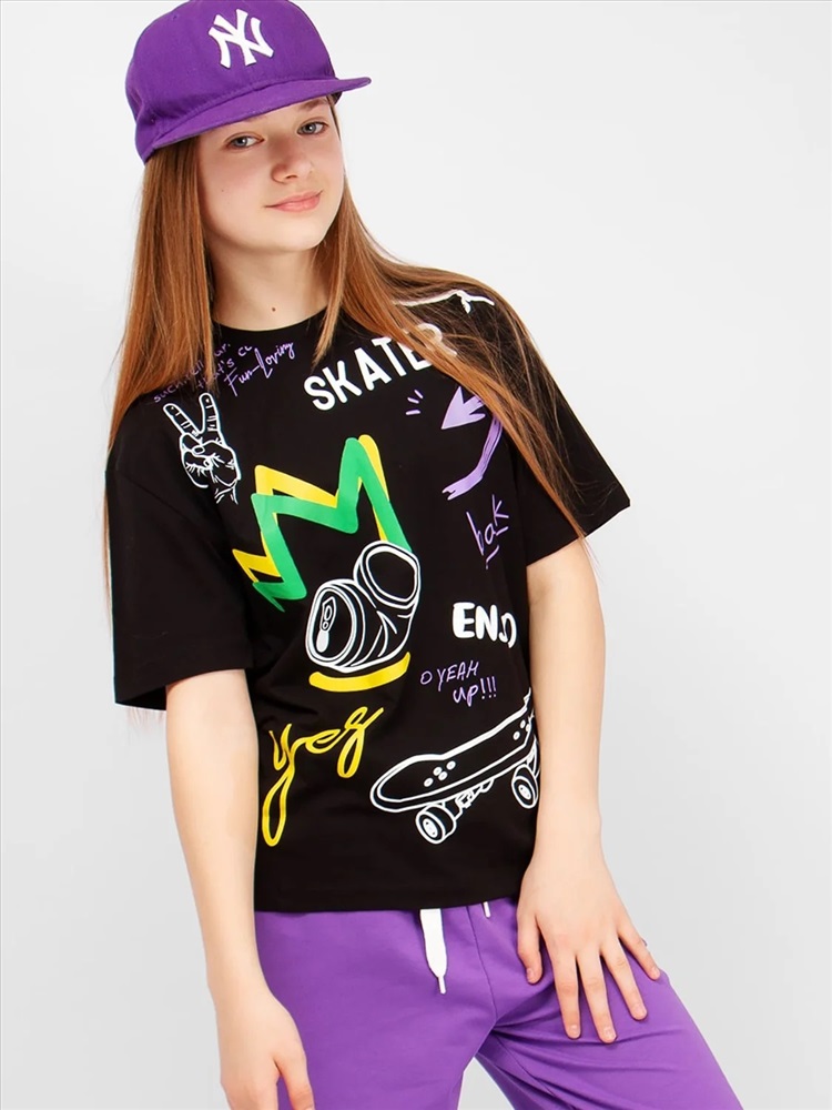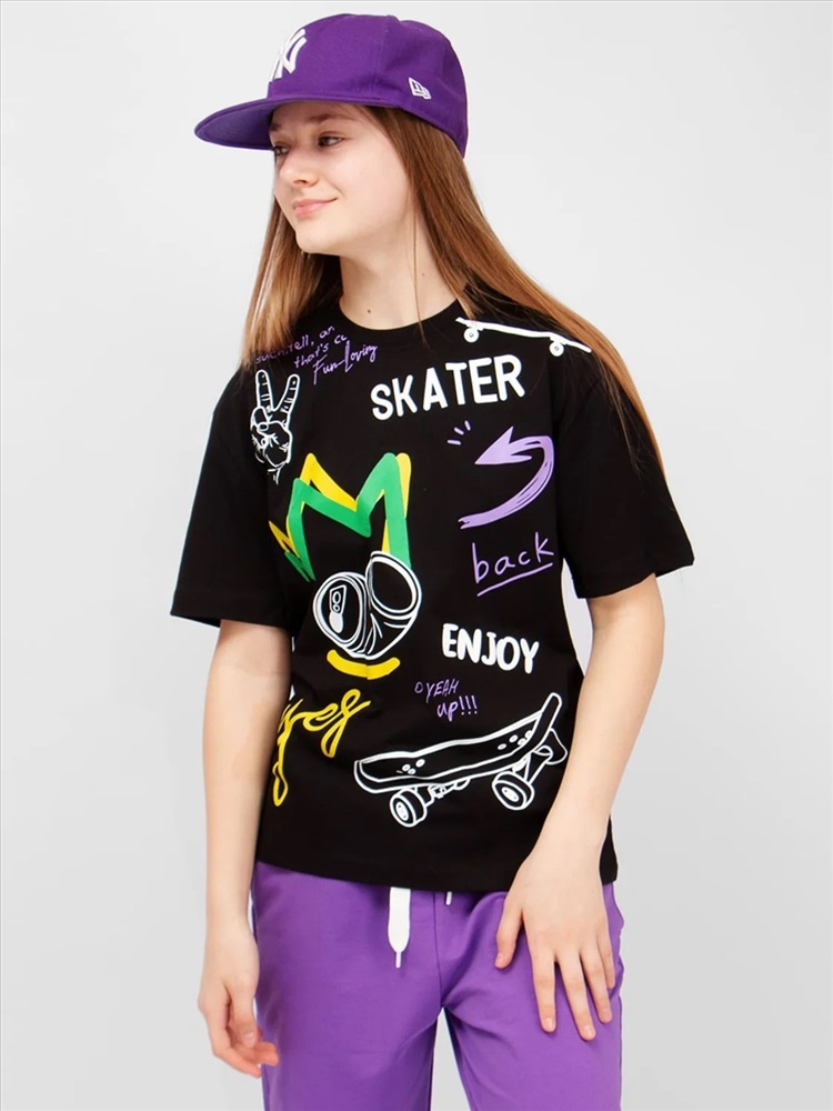 Футболка Соль&Перец из качественного хлопка. Классическая горловина. Короткий рукав. Яркий принт. Удобный крой подарят Вам свободу движений и хорошее настроение. В футболке удобно ходить дома, прогуляться или пойти в гости. Отличный вариант на каждый день.