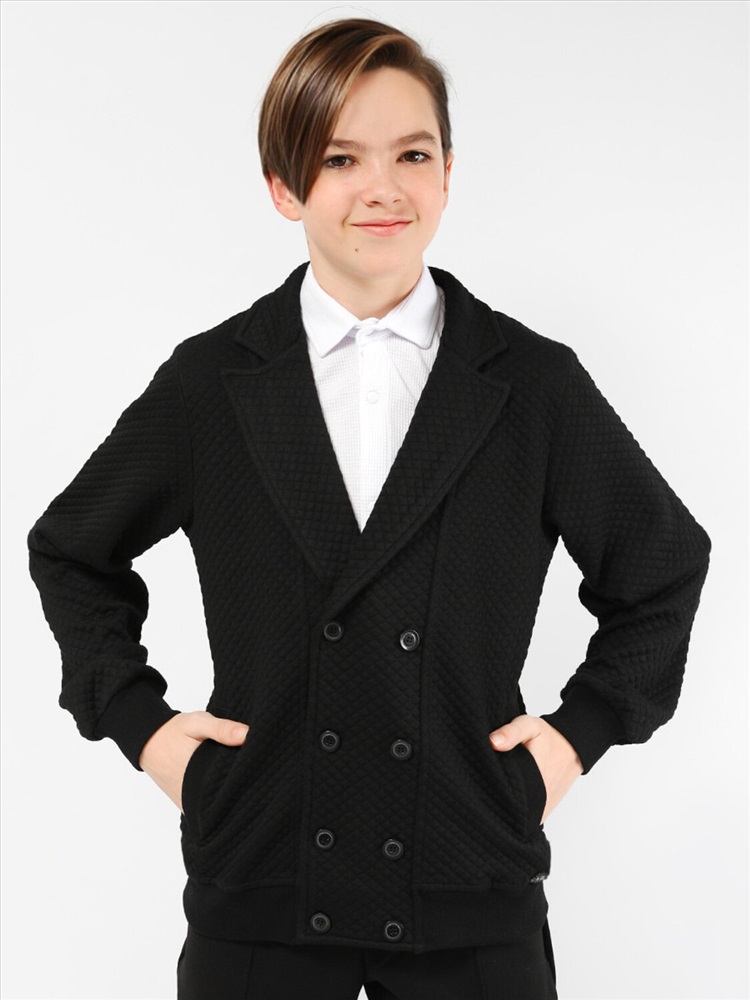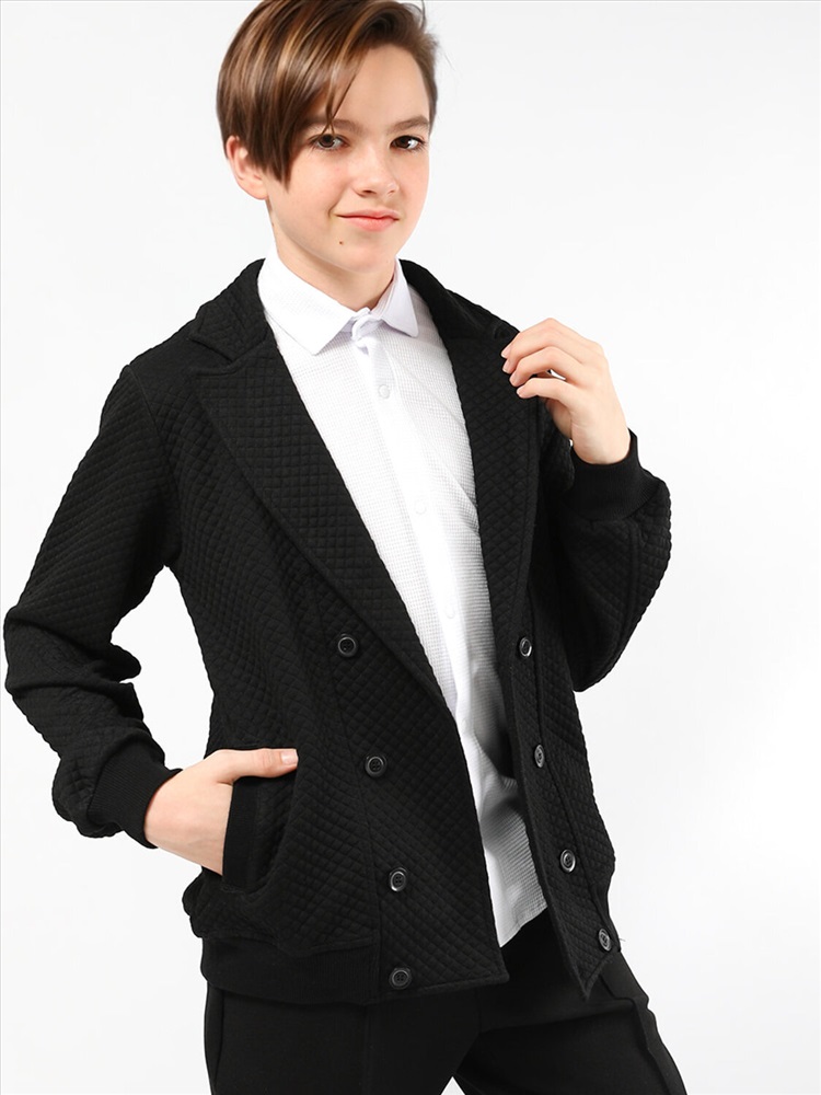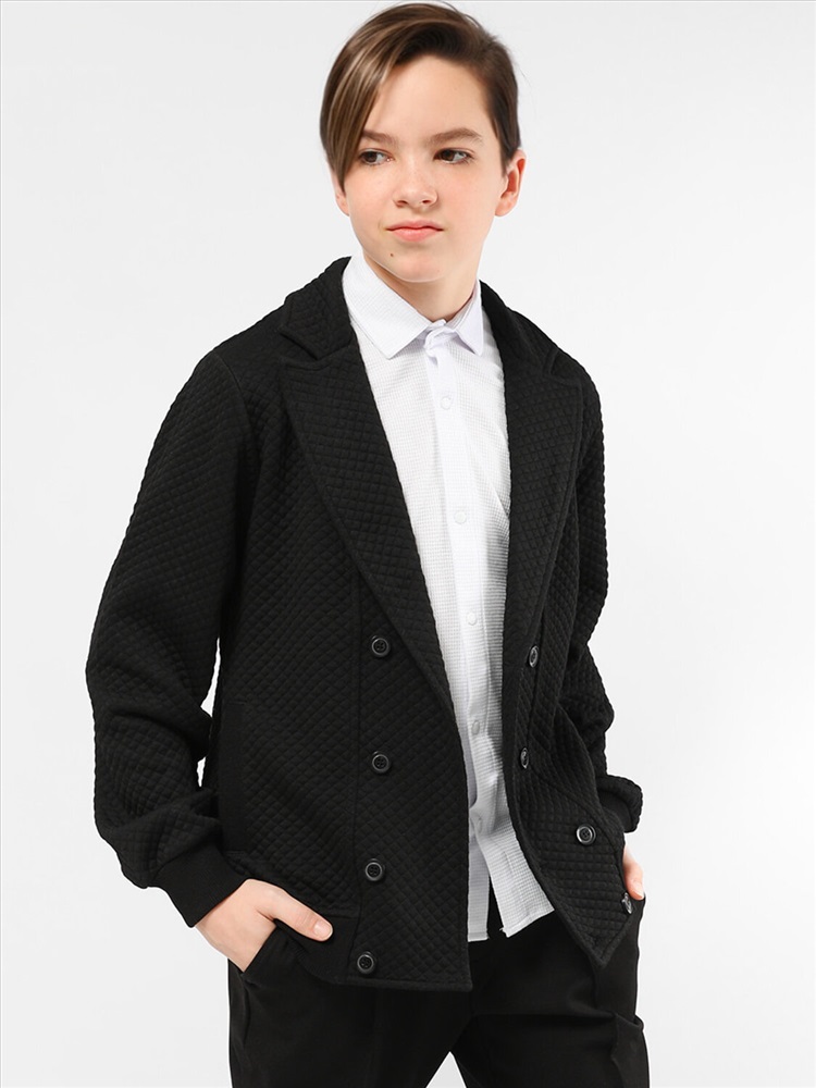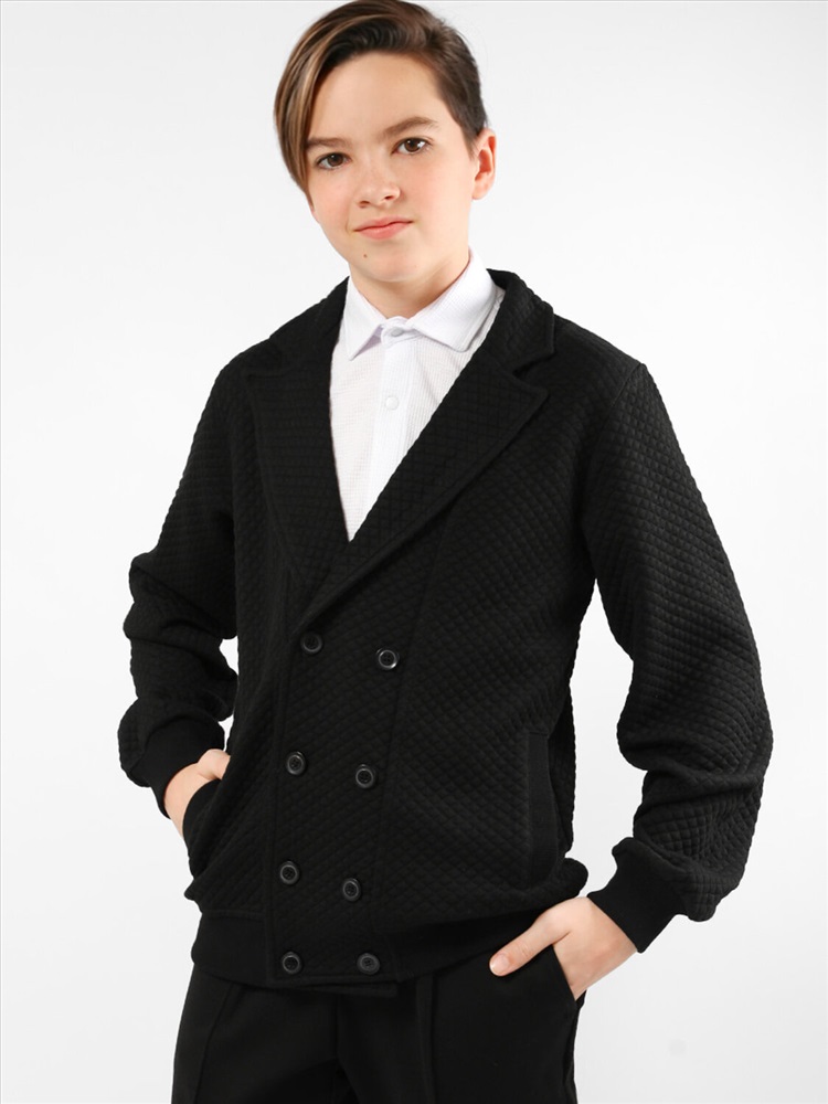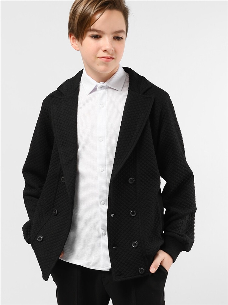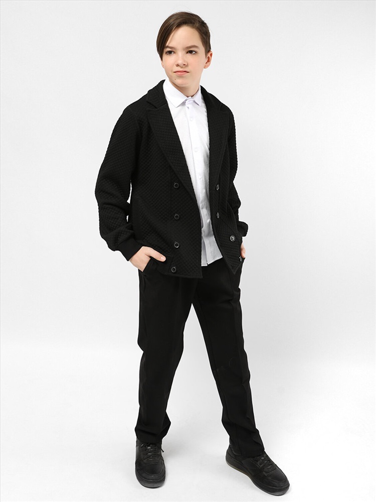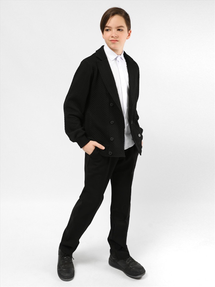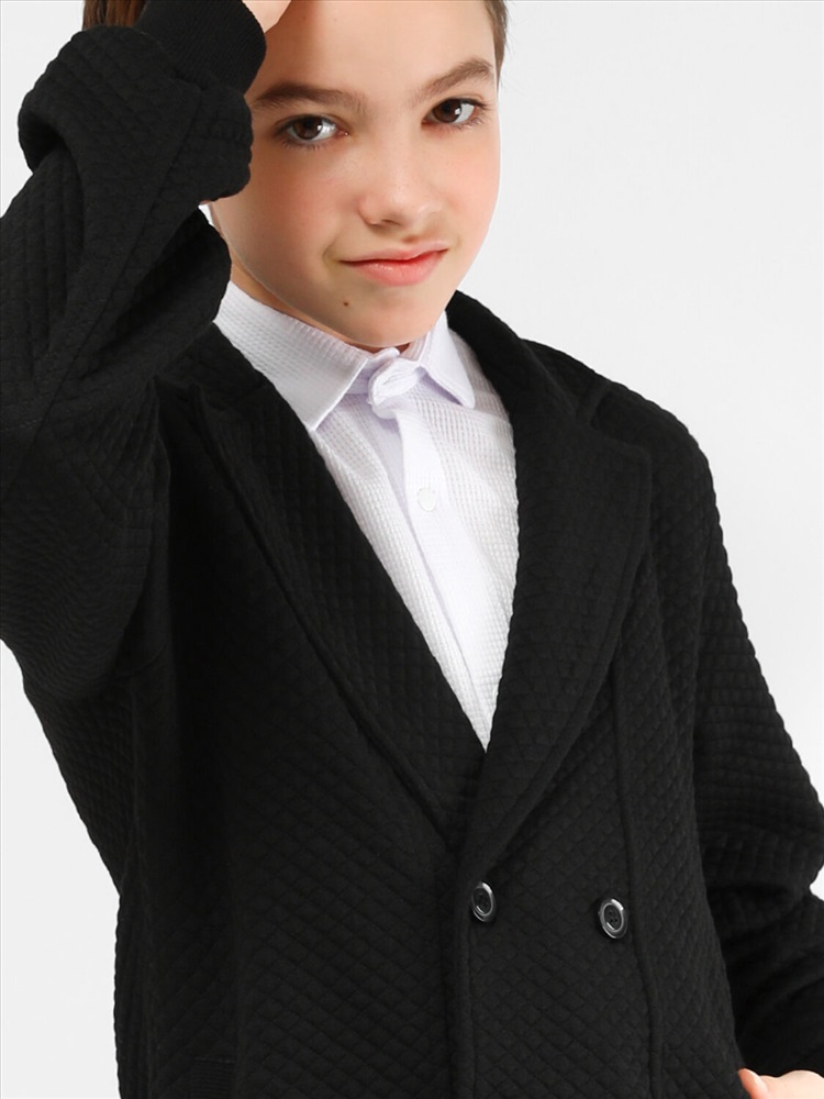 Пиджак для мальчика Соль&Перец. Рукава и низ изделия с широкими, эластичными манжетами. Модель идеально сочетается с брюками любого фасона и подойдет как для школы, так и для торжественного мероприятия.