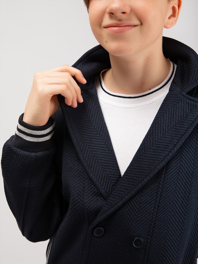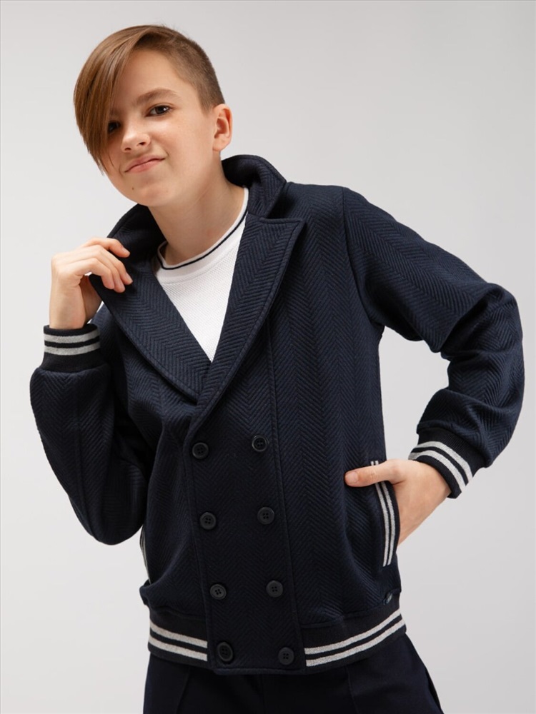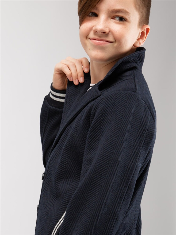 Пиджак для мальчика Соль&Перец. Рукава и низ изделия с широкими, эластичными манжетами. Модель идеально сочетается с брюками любого фасона и подойдет как для школы, так и для торжественного мероприятия.