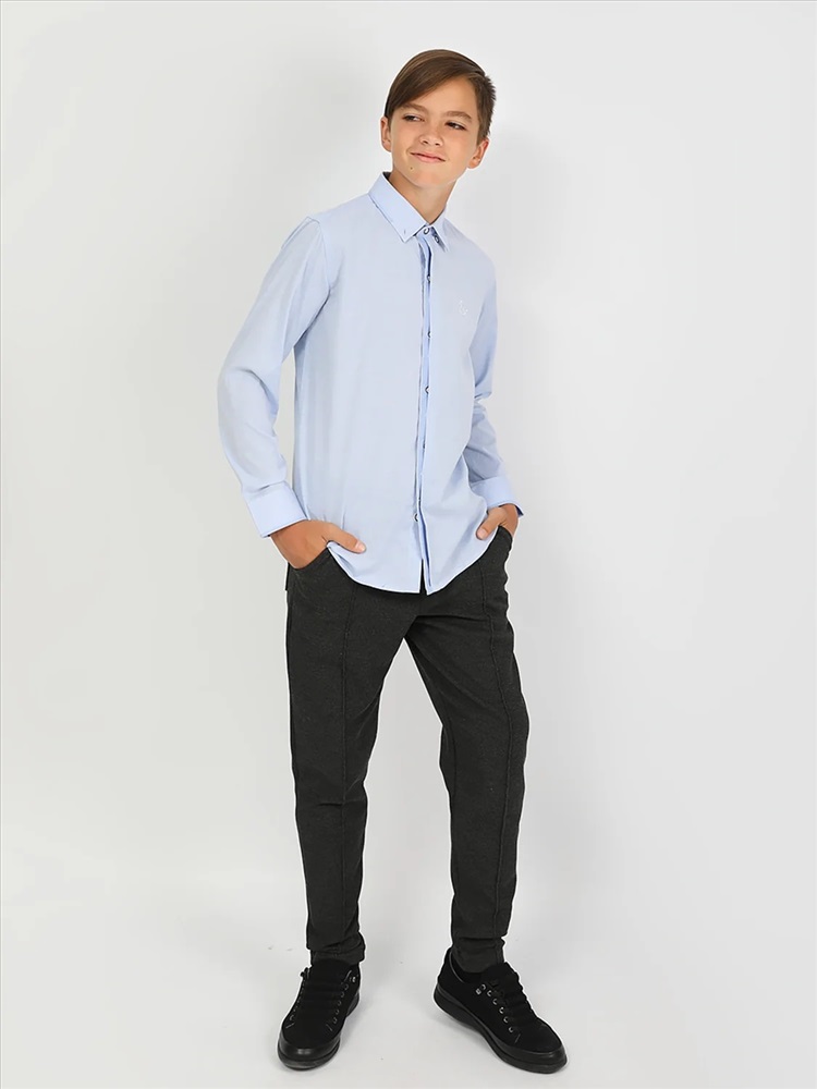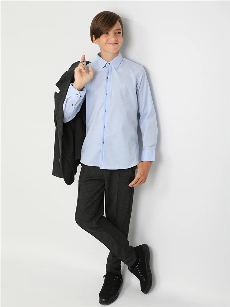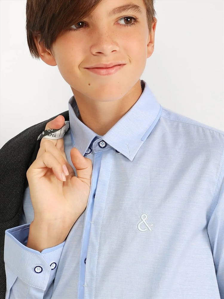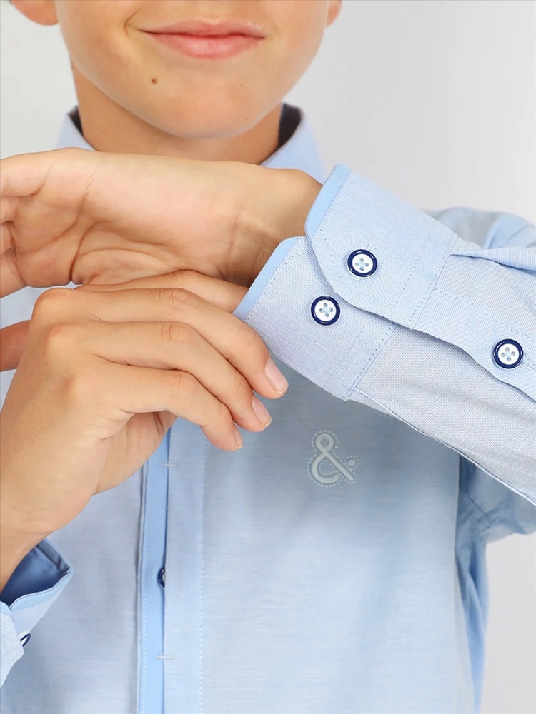 Рубашка для мальчика Соль&Перец прямого кроя, на пуговицах, с потайной планкой. Рубашка выполнена из натурального хлопка премиального качества. Рубашка идеально сочетается с брюками любого фасона и подойдет как для школы, так и для торжественного мероприятия.