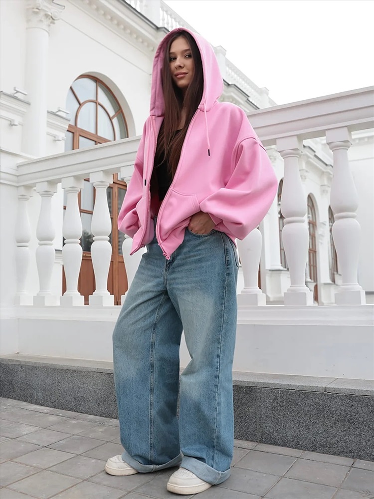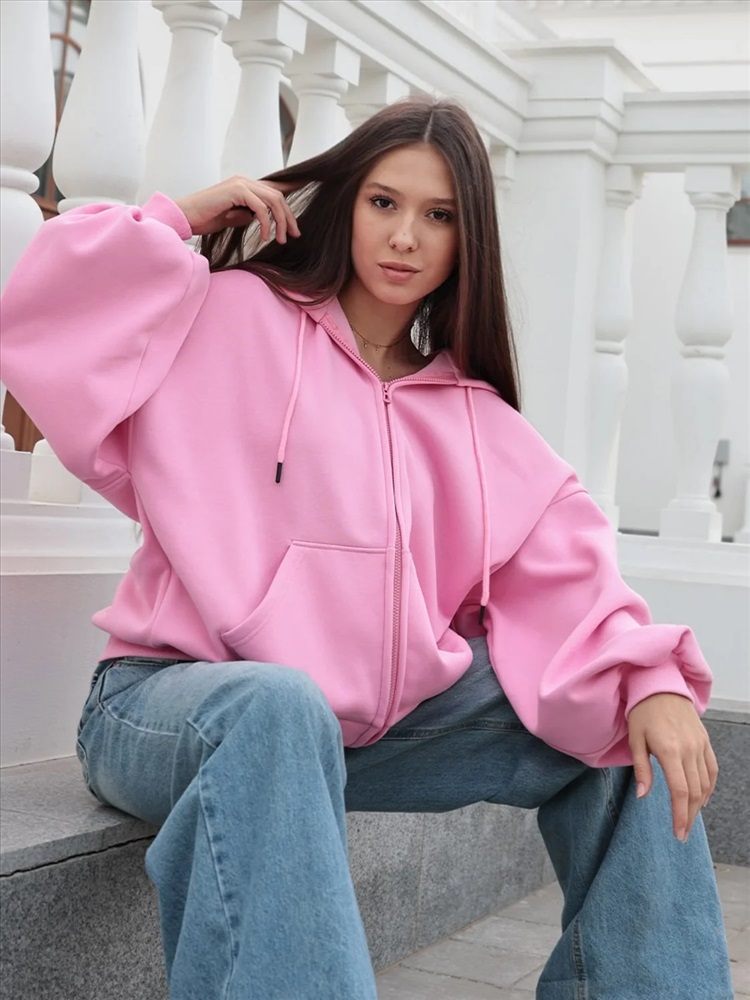 Толстовка Соль&Перец, свободного кроя оверсайз. Выполнена из плотного и эластичного материала «лининг с начесом», который хорошо пропускает воздух, не теряет форму и приятный к телу. Толстовка по всей длине на молнии, с капюшоном и карманом кенгуру. Рукава и низ толстовки с широкими, эластичными манжетами.