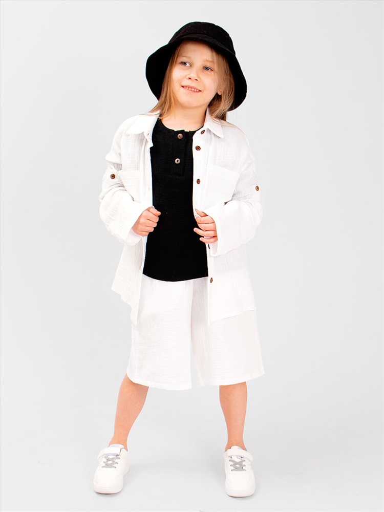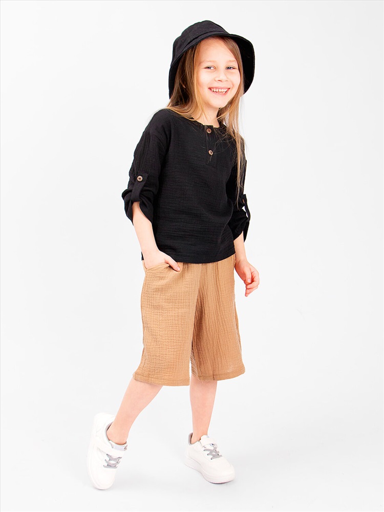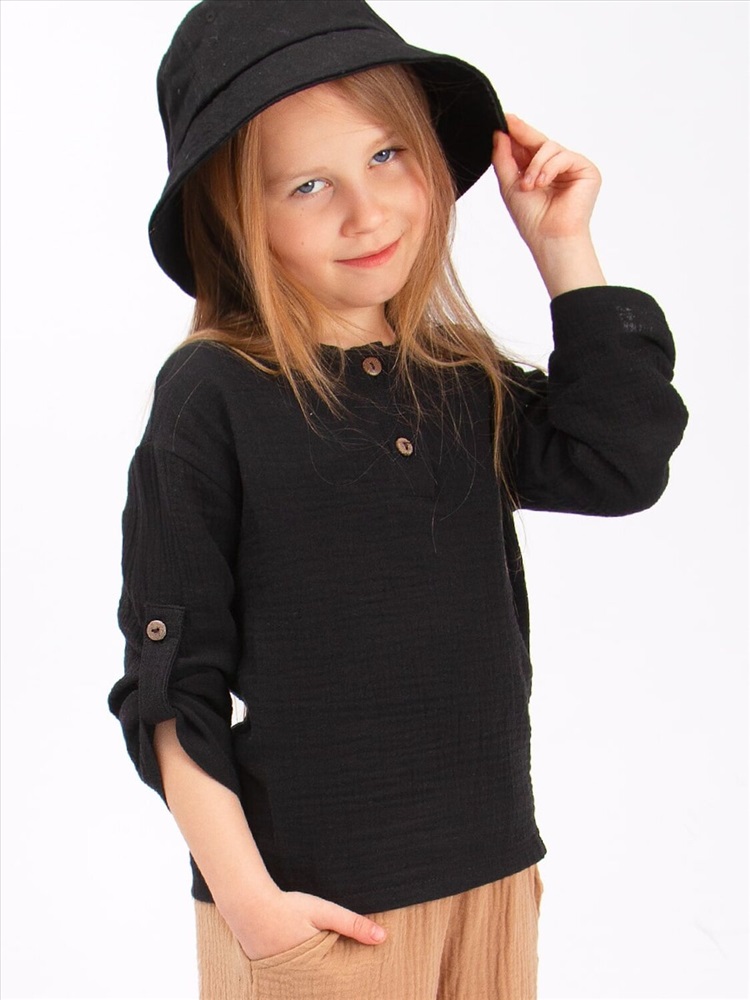 Стильная, детская, подростковая туника Соль&Перец свободного кроя. Рукава можно зафиксировать с помощью паты и пуговицы из кокоса. Ткань-двухслойный муслин, хорошо пропускает воздух, защищает от солнца, идеально подходит для чувствительной кожи.
