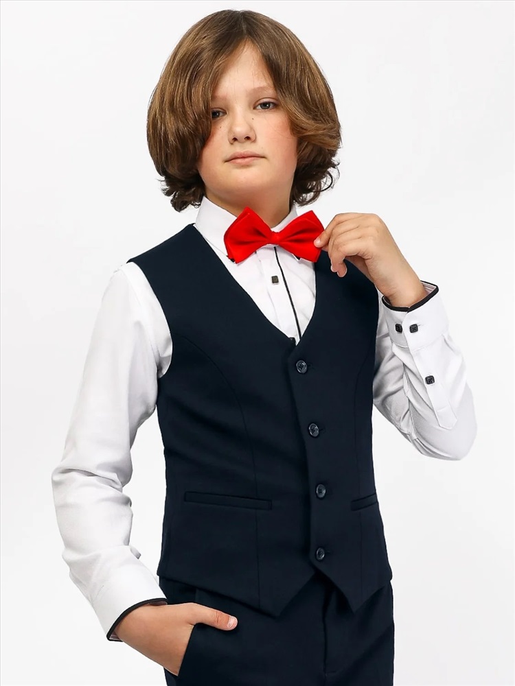 Классический, однобортный жилет для мальчика Соль&Перец. Жилет с подкладом, выполнен из износостойкой трикотажной ткани которая долго сохраняет форму и привлекательный внешний вид. Подойдёт для посещения школы, официального или праздничного мероприятия.
