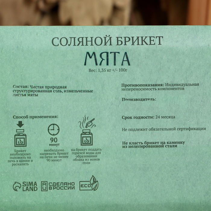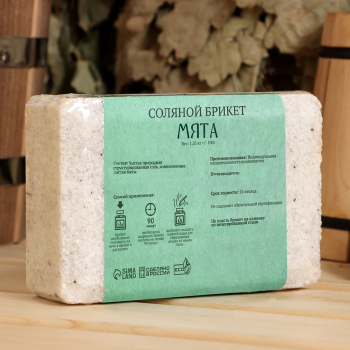 Габариты: 15 x 10 x 5 Страна: Россия В боксе: 8 шт Состав: См. на упаковке Материалы: см. на упаковке Фасовка: по 1 шт Индивидуальная упаковка: Термоусадочная пленка Сертификат: Не подлежит сертификации Вес, г: 1350 Аромат: Мята Вид: Природная структурированная соль Ароматизированная: Нет Соль для бани сделает поход в парную ещё полезнее для здоровья. Средство подходит для людей всех возрастов, используется для лечения и профилактики множества болезней. Раскаляясь вместе с камнями, кристаллы аккумулируют тепло. Испаряясь, соль благоприятно воздействует на дыхательные пути, повышает иммунитет. Контактируя с воздухом, кристаллы соли насыщают его отрицательными ионами и оказывают бактерицидный эффект. Соль благоприятно воздействует на весь организм человека: повышает иммунитет, улучшает состояние кожных покровов, приводит в тонус мышцы и успокаивает нервную систему. Её минералы оказывают омолаживающий эффект. Применение: нагревайте брикет на печи не менее 90 минут, затем поддайте на него горячей воды. Соль наполнит воздух бани ионами, тем самым поможет снять усталость, улучшить кровообращение и общее самочувствие. Комментарии к товару