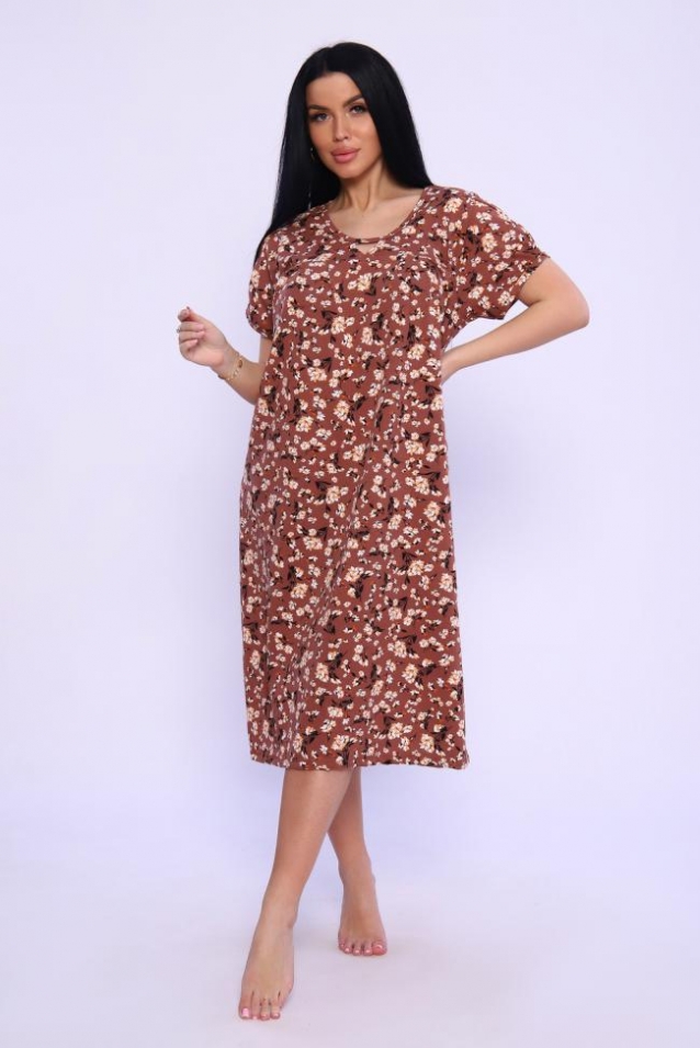 Сорочка свободного кроя с короткими рукавами внахлест. Полочка с кокеткой и складками над грудью. Комфортна для повседневной носки и сна.