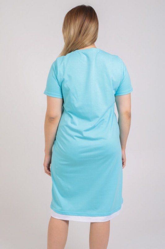 Женская ночная сорочка, прямой силуэтной формы, длиной ниже уровня колена. На полочке печать, вырез горловины О-образный. По низу изделия планка. Рукав втачной базового покроя, короткий. Комментарии к товару