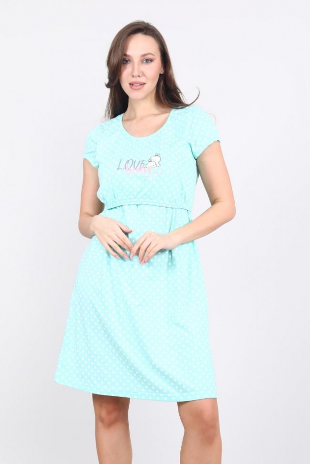 Сорочка женская с рукавом для беременных и кормящих. Данная модель выполнена из трикотажного полотна кулирка (хлопок 100%). Полочка состоит из двух частей, верхняя кокетка поднимается так, чтобы было удобно и без усилий покормить малыша. Отлично подходит для сна и отдыха дома. Рост модели на фото 170 см, размер 42-44
